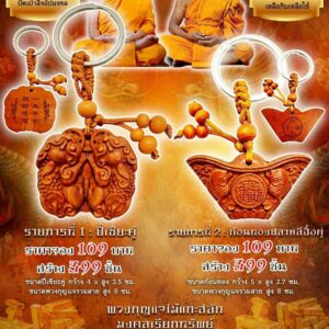 หลวงพ่อเมียน วัดบ้านจะเนียง พวงกุญแจไม้แกะสลัก รวยทรัพย์ มั่งมี