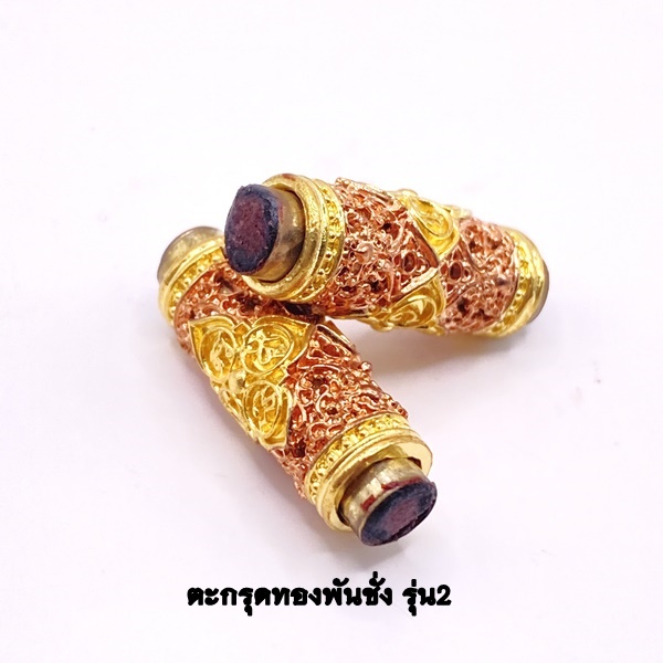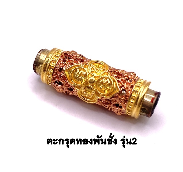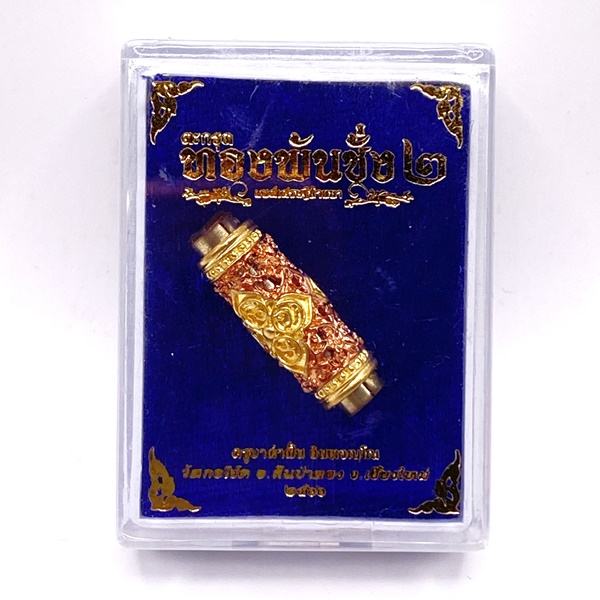 ครูบาคำฝั้น วัดกอโชค ตะกรุดทองพันชั่ง รุ่น 2 เนื้อชุบ 2K พิงค์-ทอง KM069
