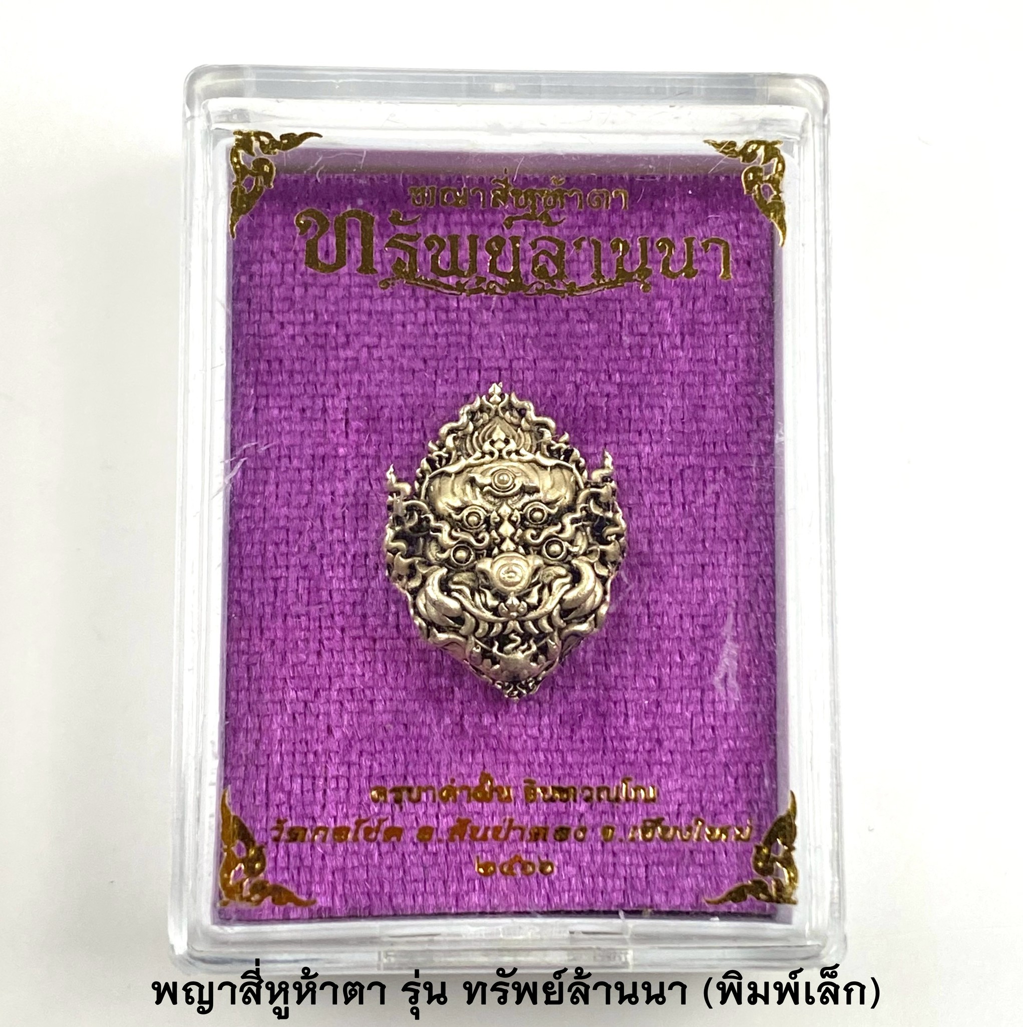 ครูบาคำฝั้น วัดกอโชค หน้ากากสี่หูห้าตา พิมพ์เล็ก เนื้อซาตินเงิน KM024