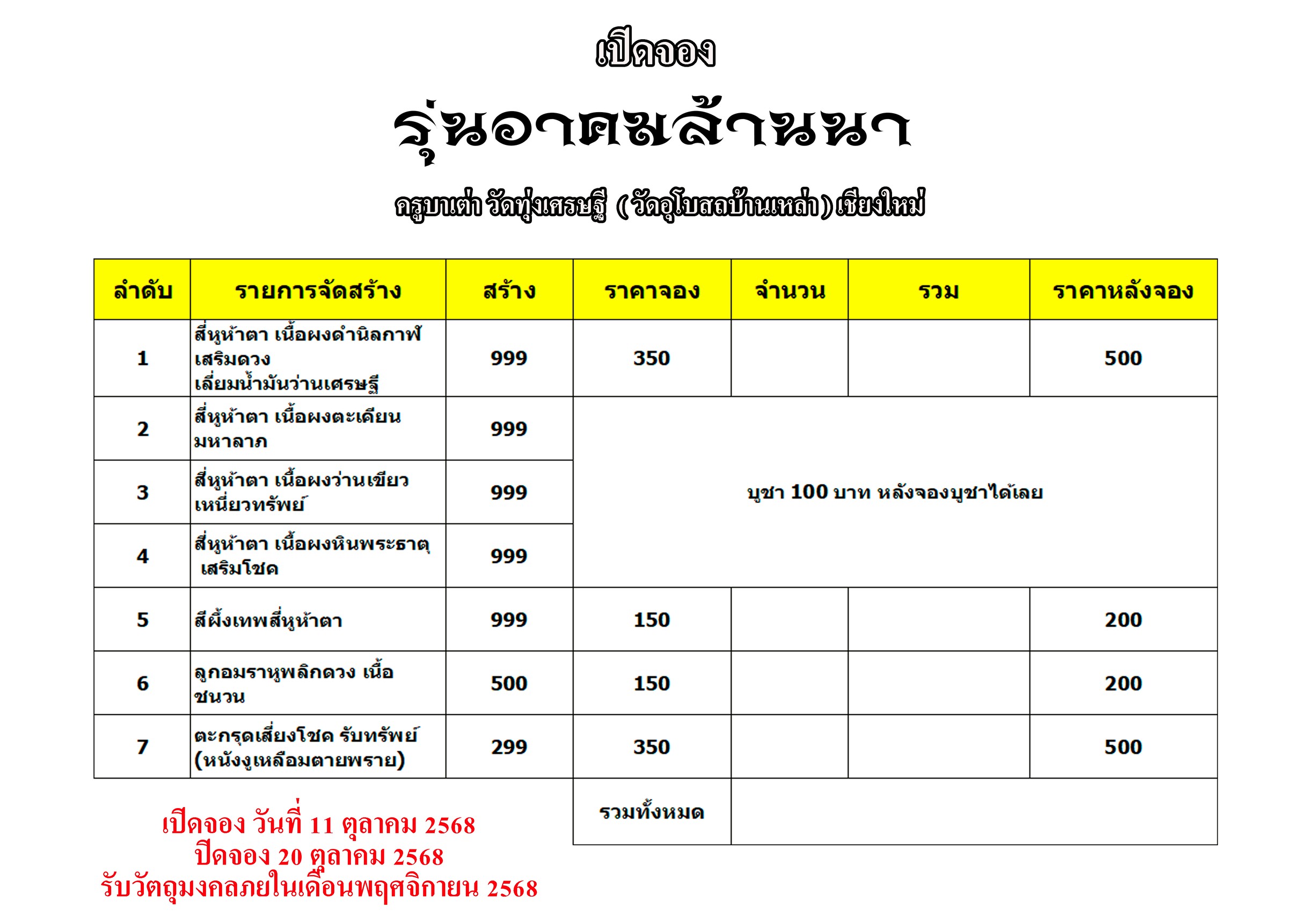 เปิดรับจองวัตถุมงคลครูบาเต่า วัดทุ่งเศรษฐี (วัดอุโบสถบ้านเหล่า) จ.เชียงใหม่