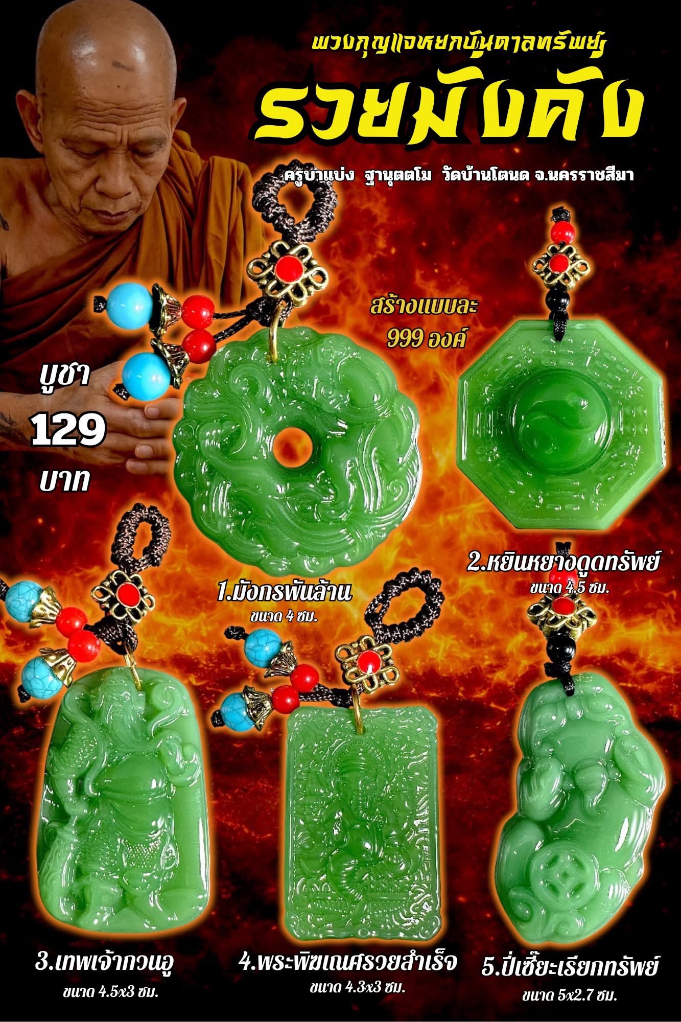 ครูบาแบ่ง วัดบ้านโตนด พวงกุญแจหยกบันดาลทรัพย์ รวยมั่งคั่ง