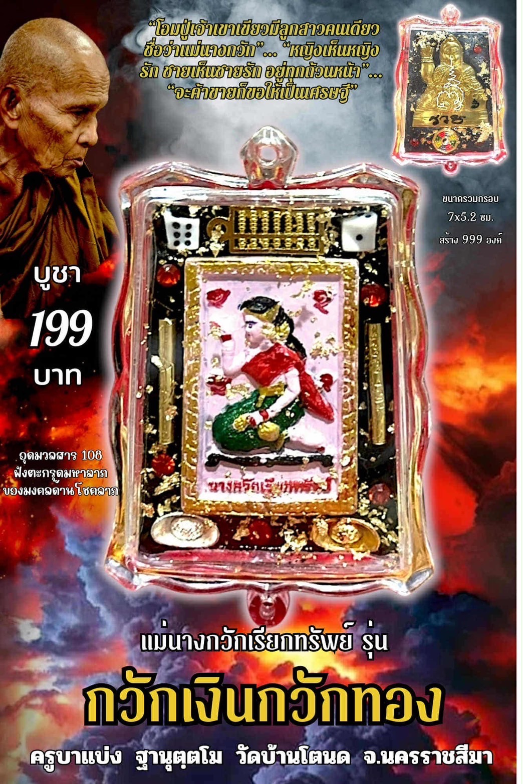 ครูบาแบ่ง วัดบ้านโตนด แม่นางกวักเรียกทรัพย์ กวักเงินกวักทอง พร้อมเลี่ยม