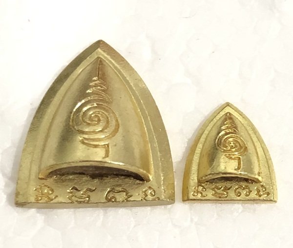 ผานไถ พลิกดวง รุ่น ชนะจน พุทธาคมเขาอ้อ วัดภูเขาทอง เนื้อทองเหลืองขัดเงา (ขนาดเล็กสูง 1.2 ซม.) KM254