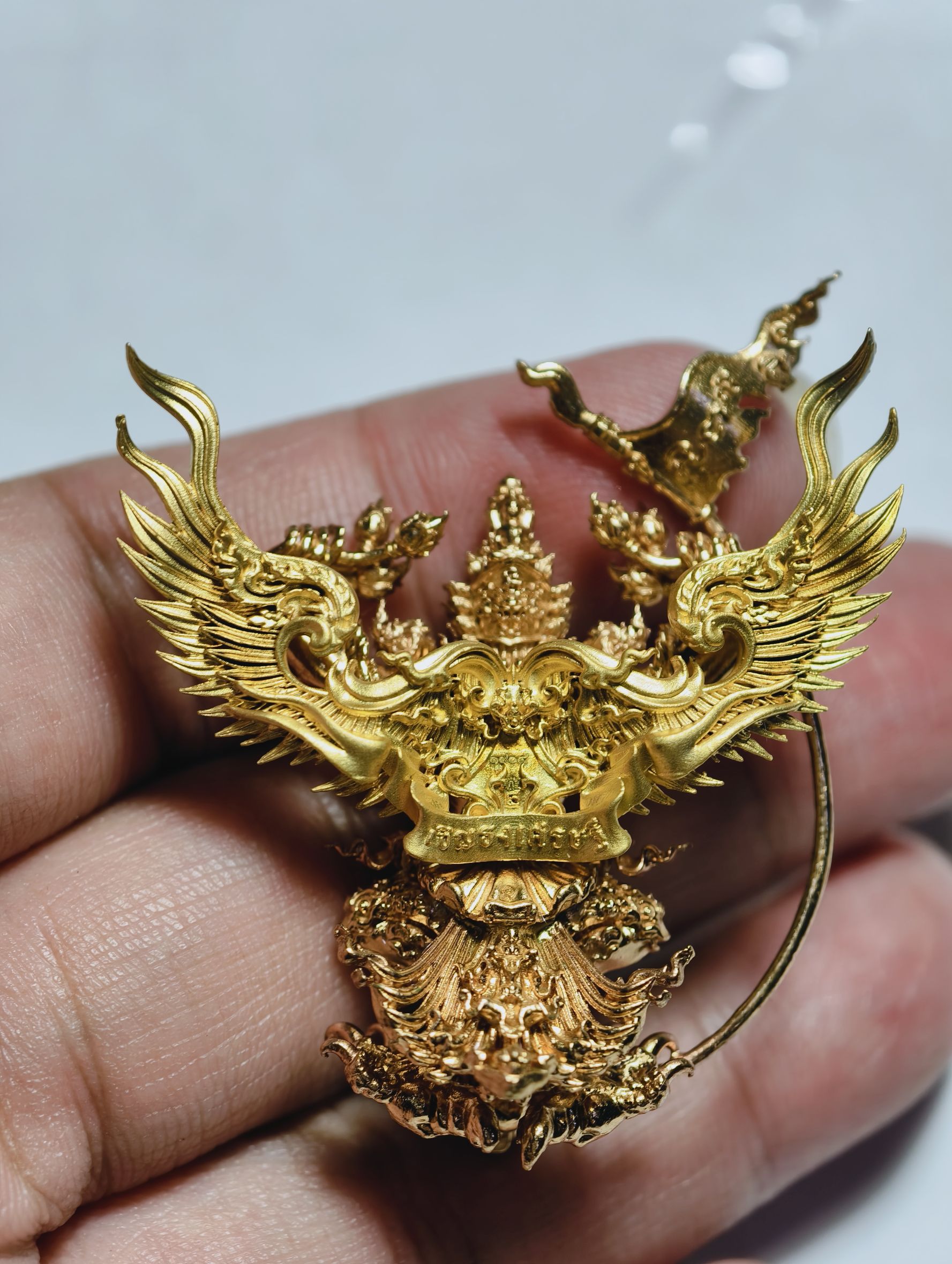 พญาครุฑ วัดครุฑ รุ่น4 เชิญธงเศรษฐี อัศจรรย์โลกไม่ลืม ทองชมพู ปีกทูโทน พิมพ์ใหญ่ (AC5778