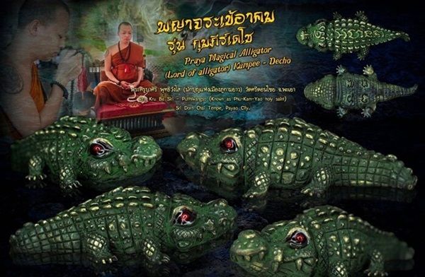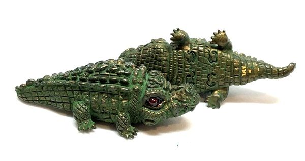 พญาจระเข้อาคม รุ่น กุมภีร์เดโช เนื้อสนิมเขียว ตาแดง KM539