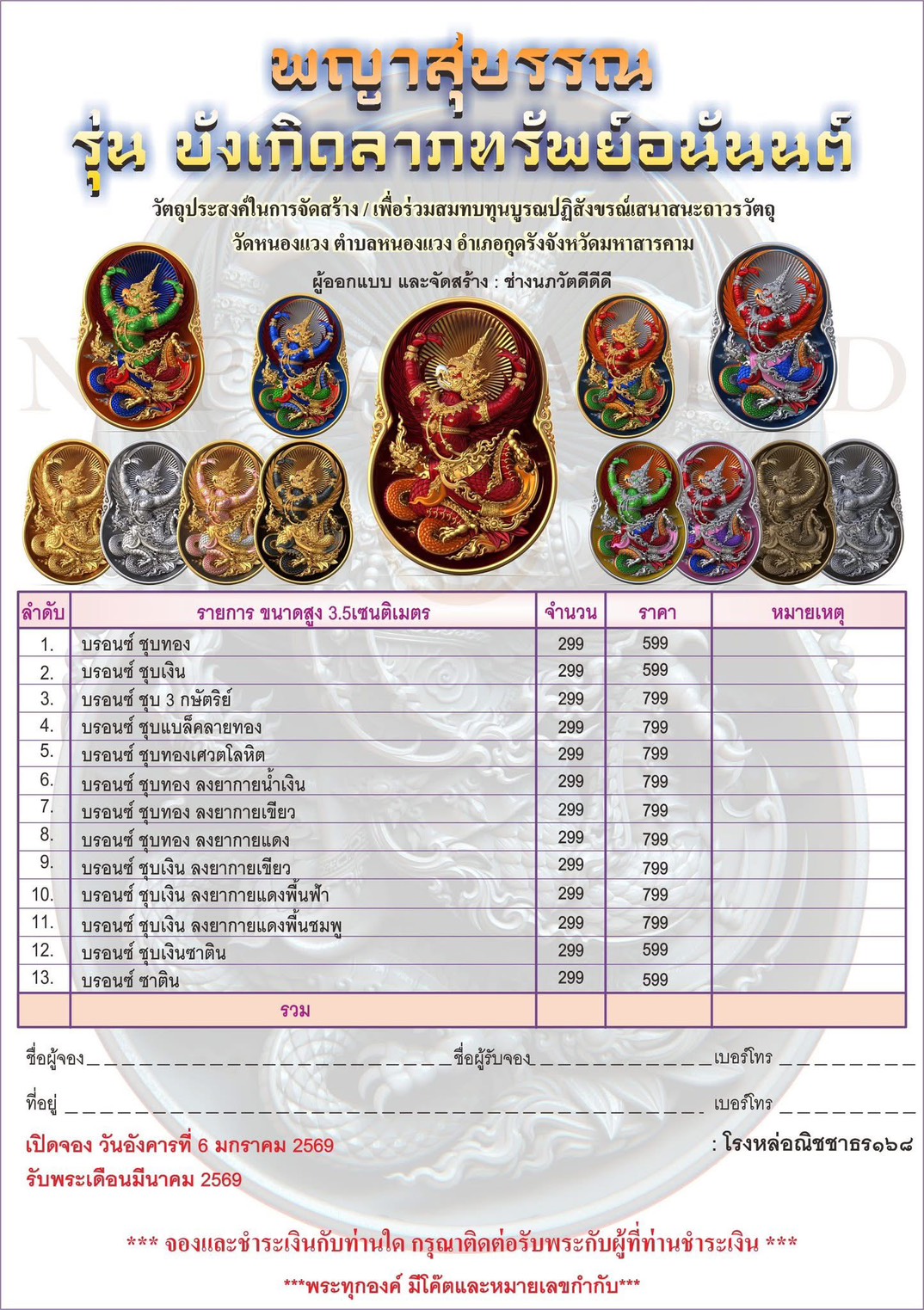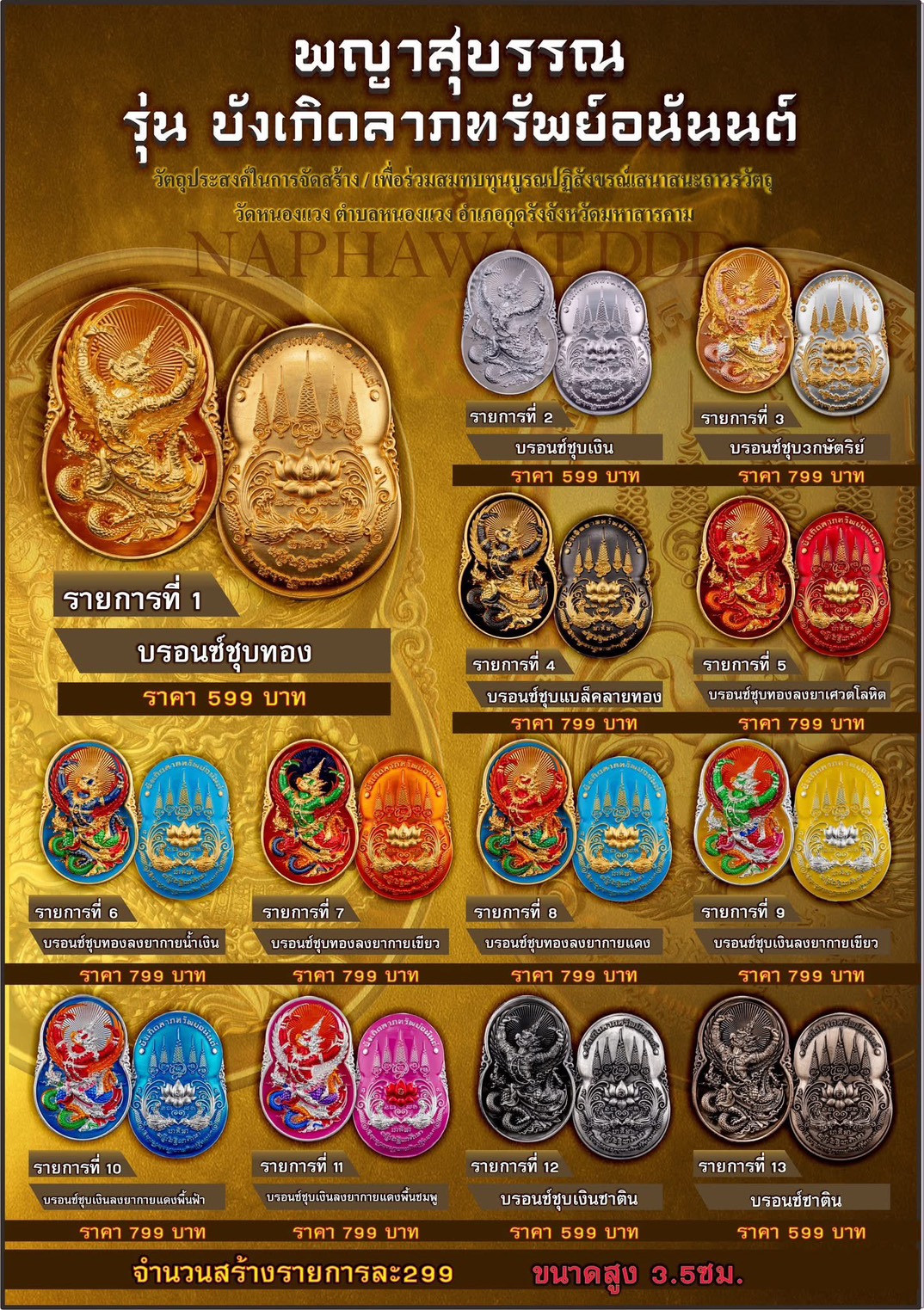 จำนวนจัดสร้าง รายการละ 299 เหรียญ