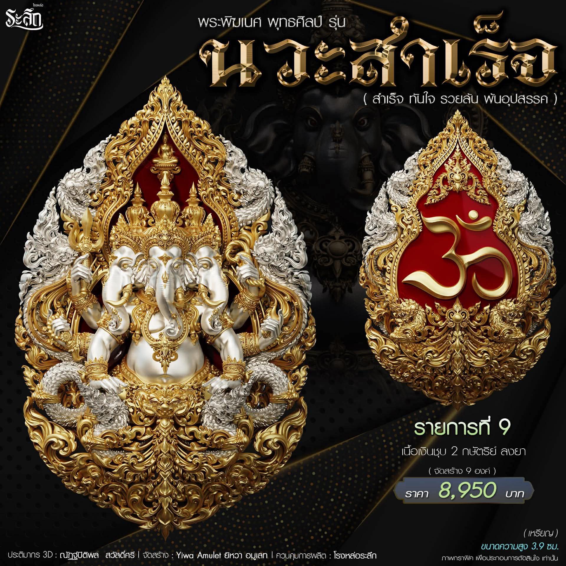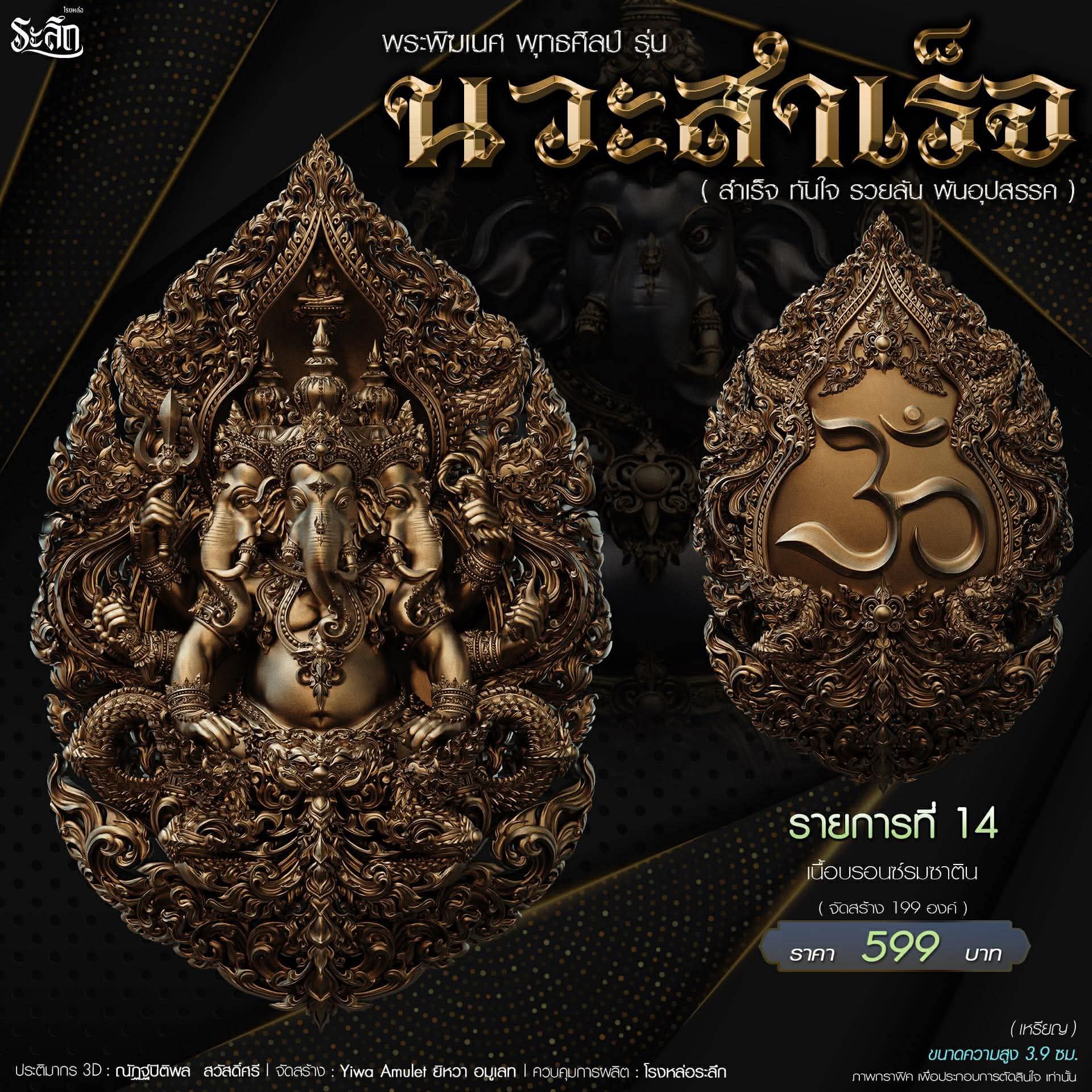 พระพิฆเนศ พุทธศิลป์ รุ่น นวะสำเร็จ แบบเหรียญ