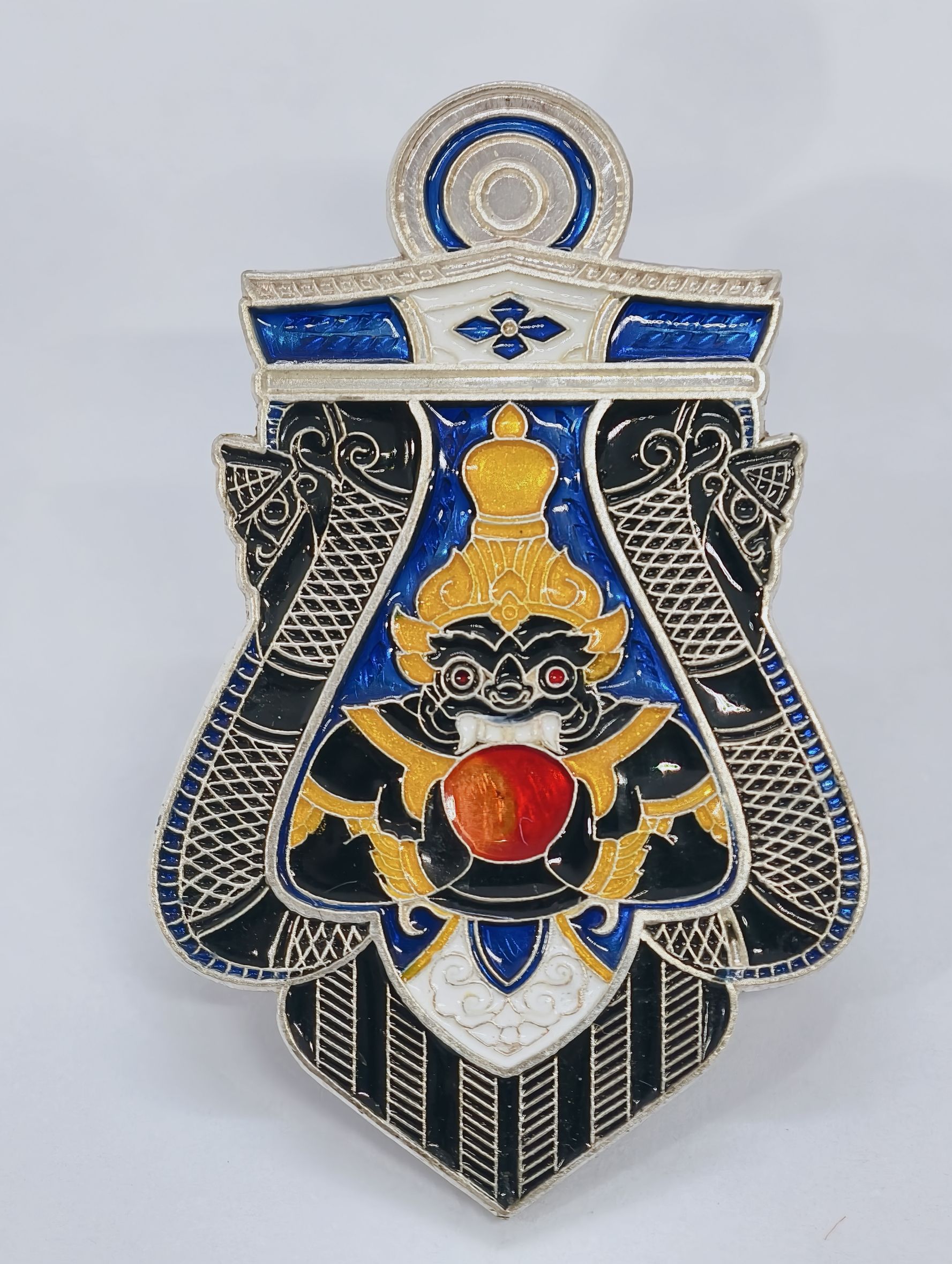 พระราหูอมจันทร์ ราชาโชค วัดศีรษะทอง เนื้อเงิน ลงยา (KA1599)