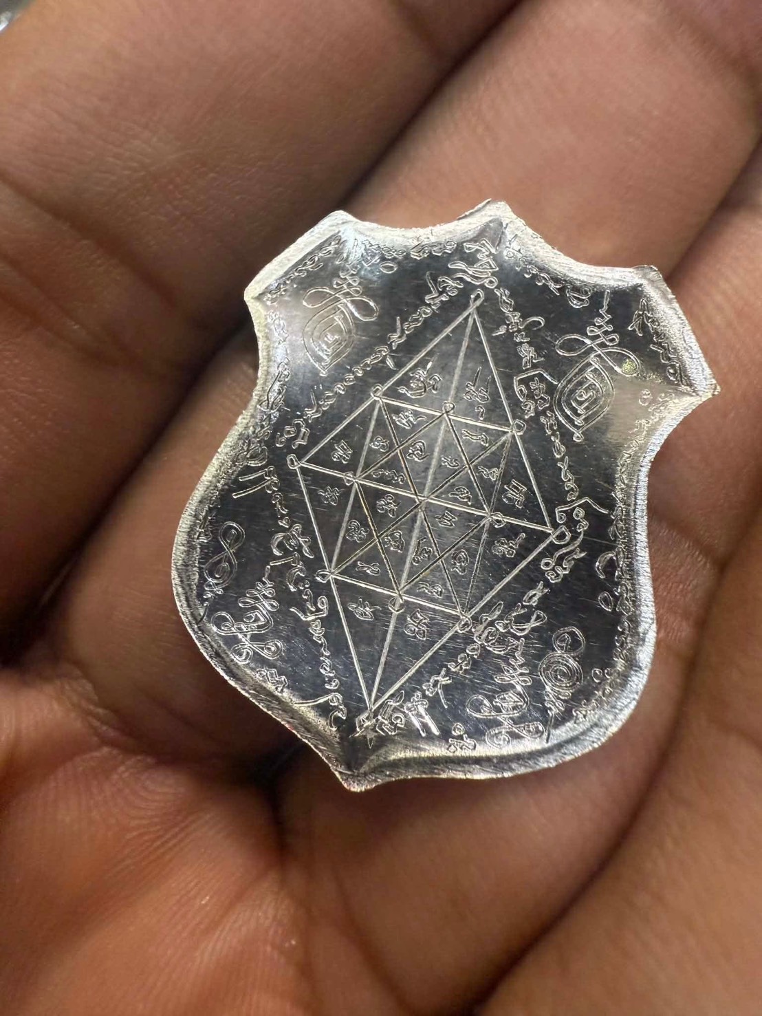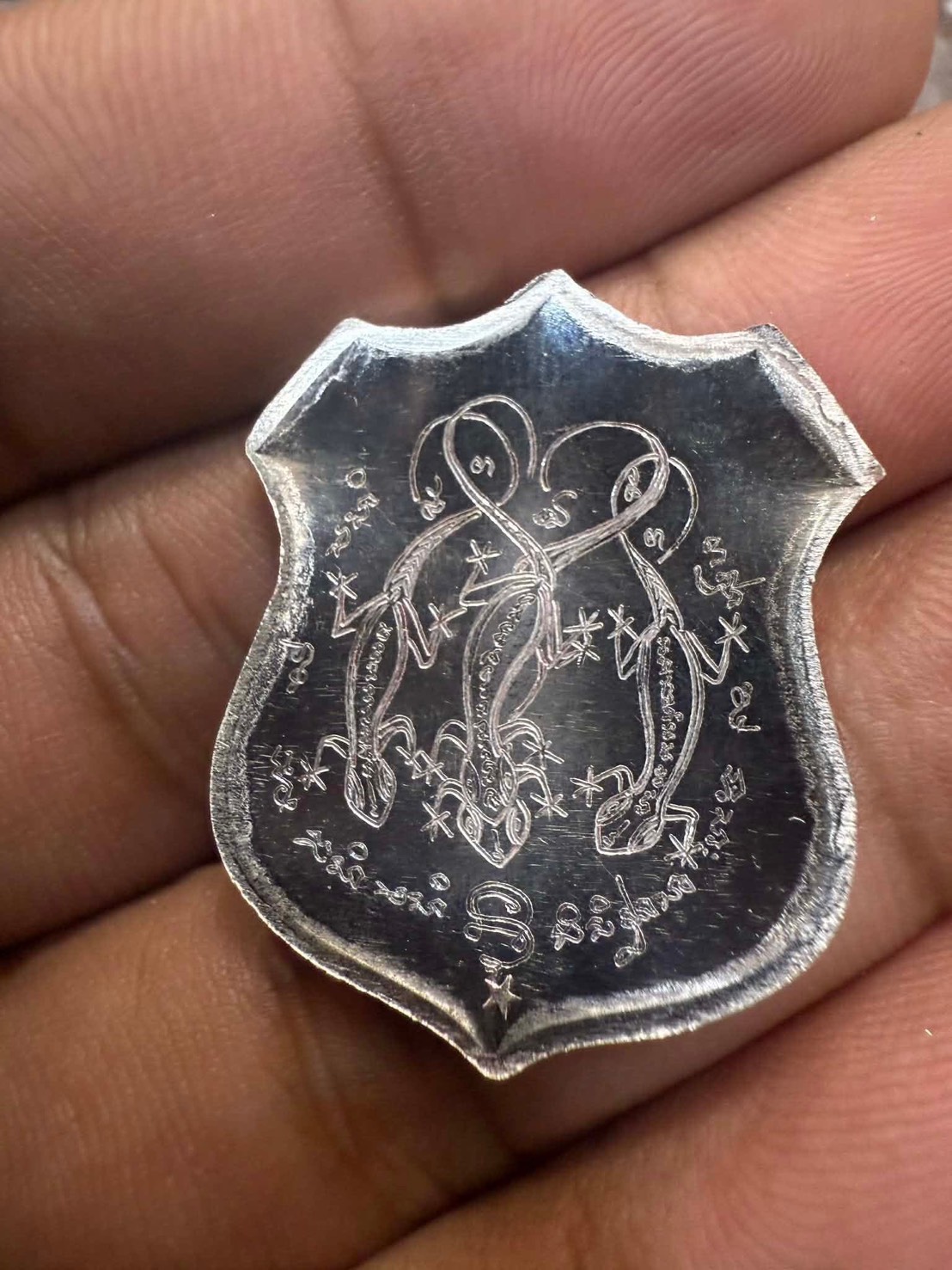 สดๆ รอยจารมือพระอาจารย์วีรพล ท่านเมตตาจารย์เหรียญพรหมเศรษฐีหลังเรียบ รายการเนื้อเงินหน้ากากทองคำหลังเรียบ (ลุ้นรอยจาร)และ เนื้อเงินหน้ากากนาค หลังเรียบ( ลุ้นรอยจาร) ไว้จัดใส่ไปในลุ้นลุ้น