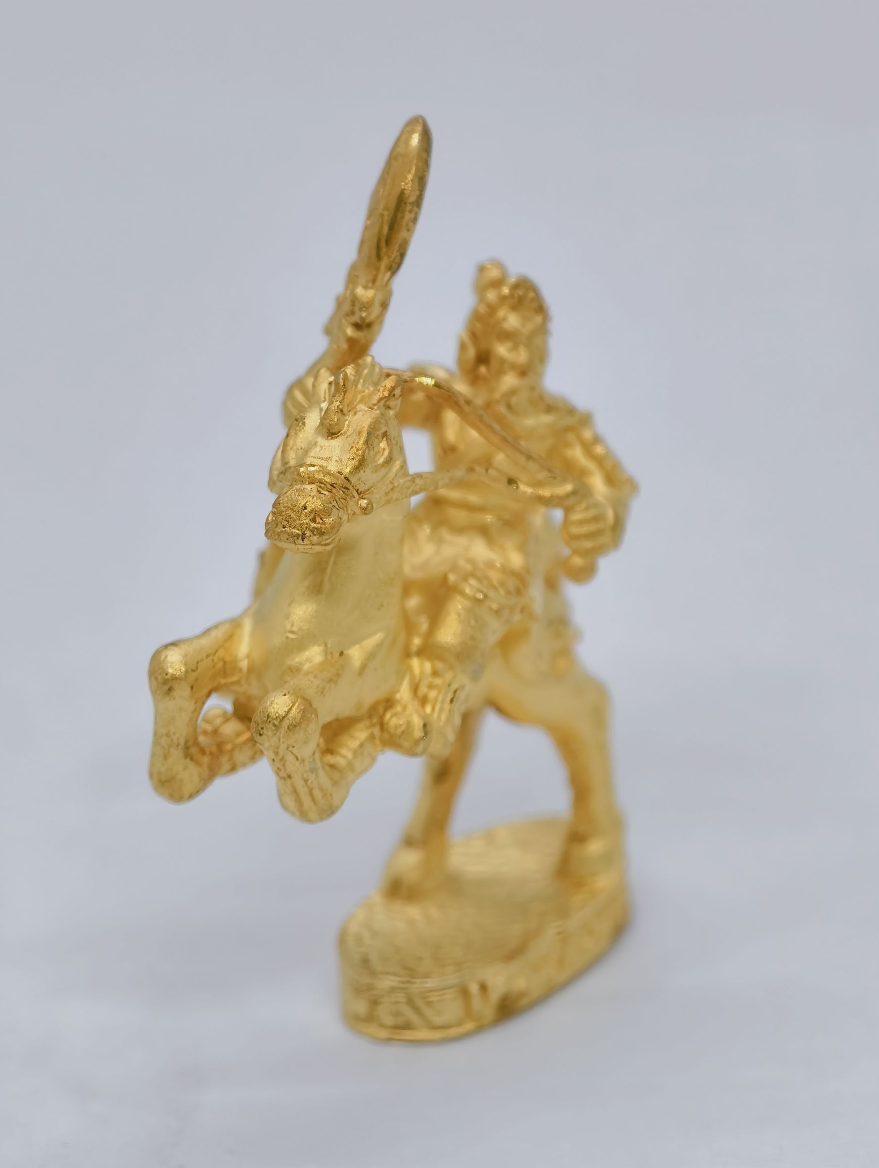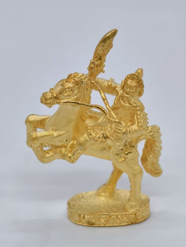 หลวงปู่คีย์ วัดศรีลำยอง เทพเจ้ากวนอู ทรงม้าศึกเซ็กเทา รุ่น สรงน้ำ 57 เนื้อโลหะชุบทอง พร้อมคาถาบูชา (KA3224)