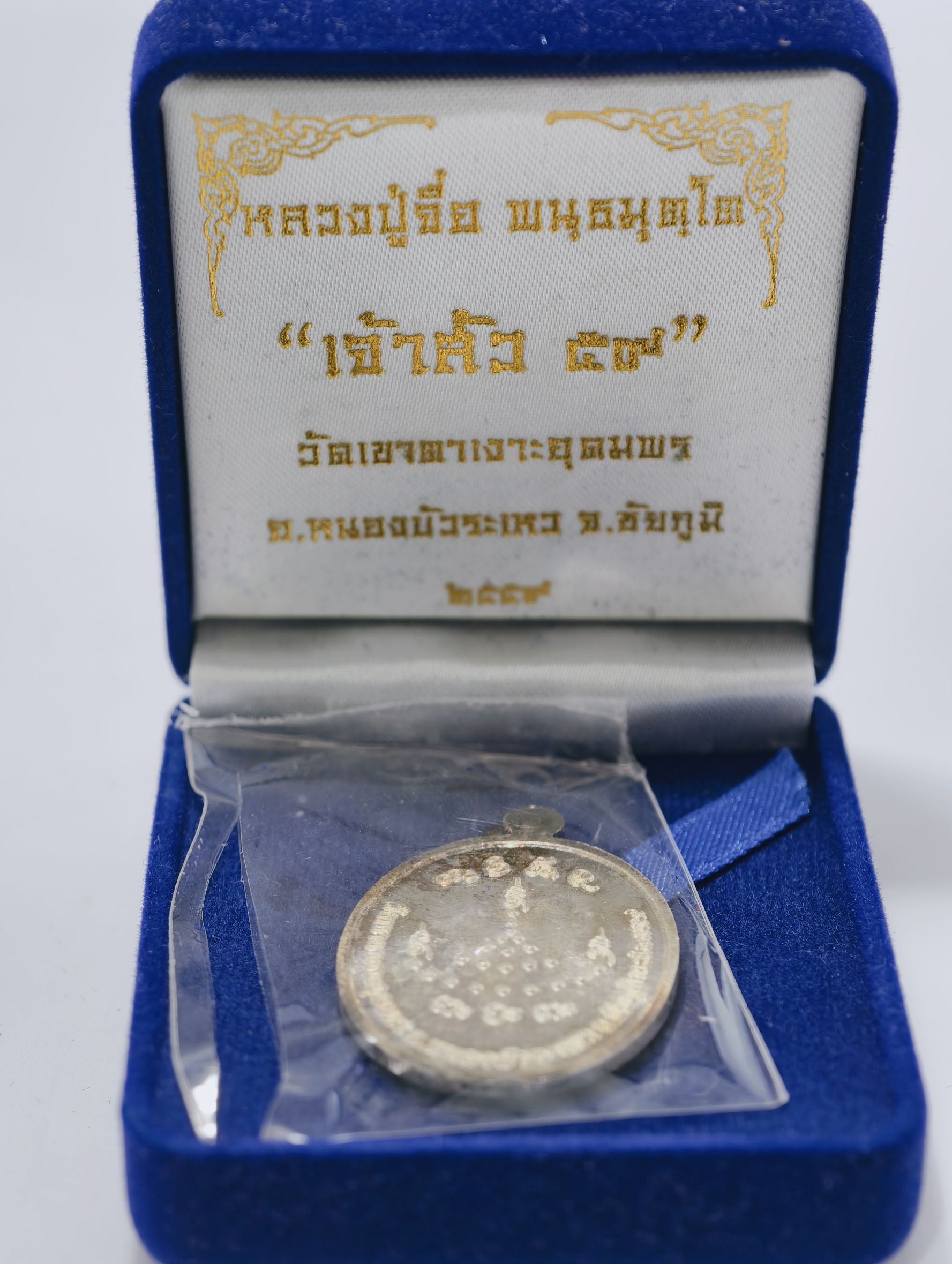 หลวงปู่จื่อ วัดเขาตาเงาะอุดมพร จังหวัดชัยภูมิ เหรียญเจ้าสัว 59 เนื้อเงิน AC3536