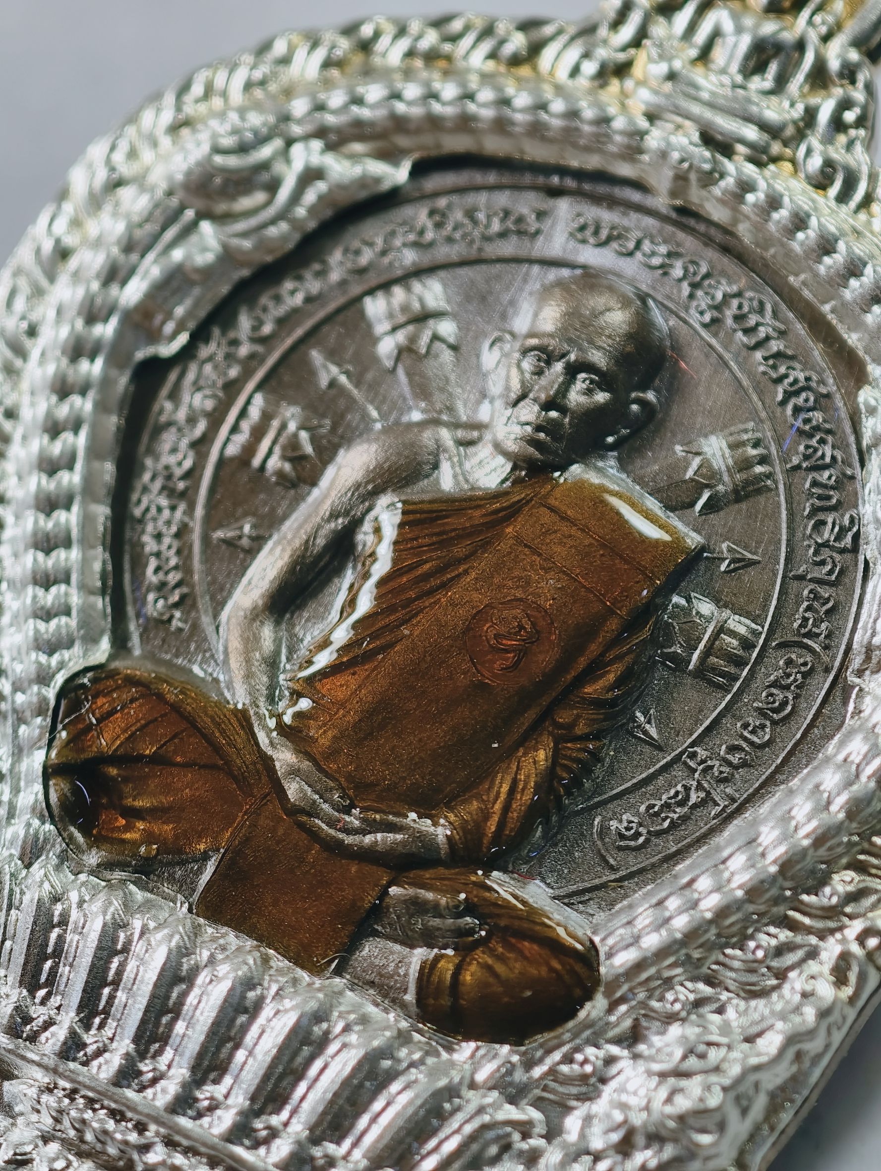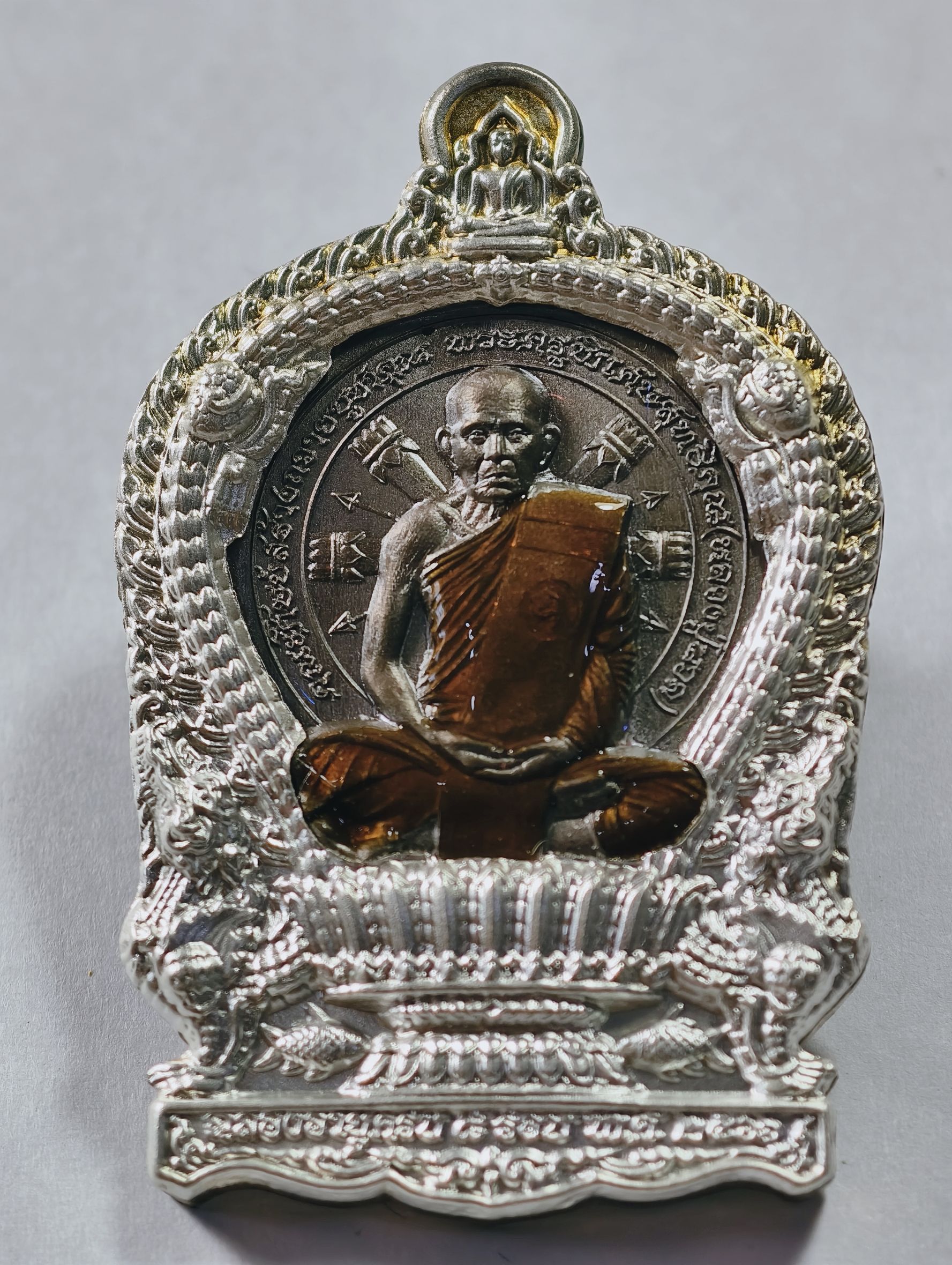 หลวงปู่นวล วัดหนองจอก นั่งพาน 8 รอบ นวะโลหะ หน้ากากเงิน AC7232