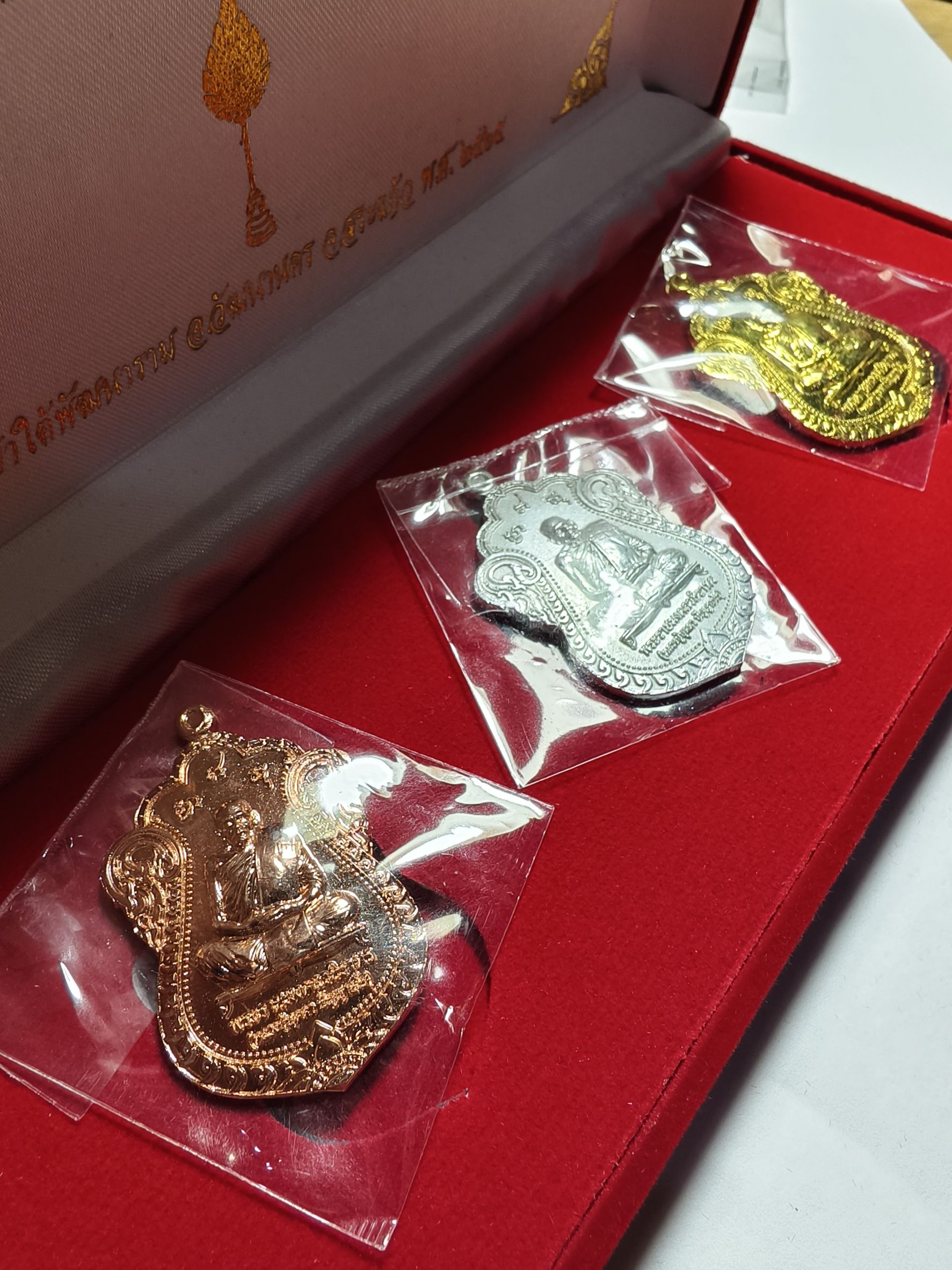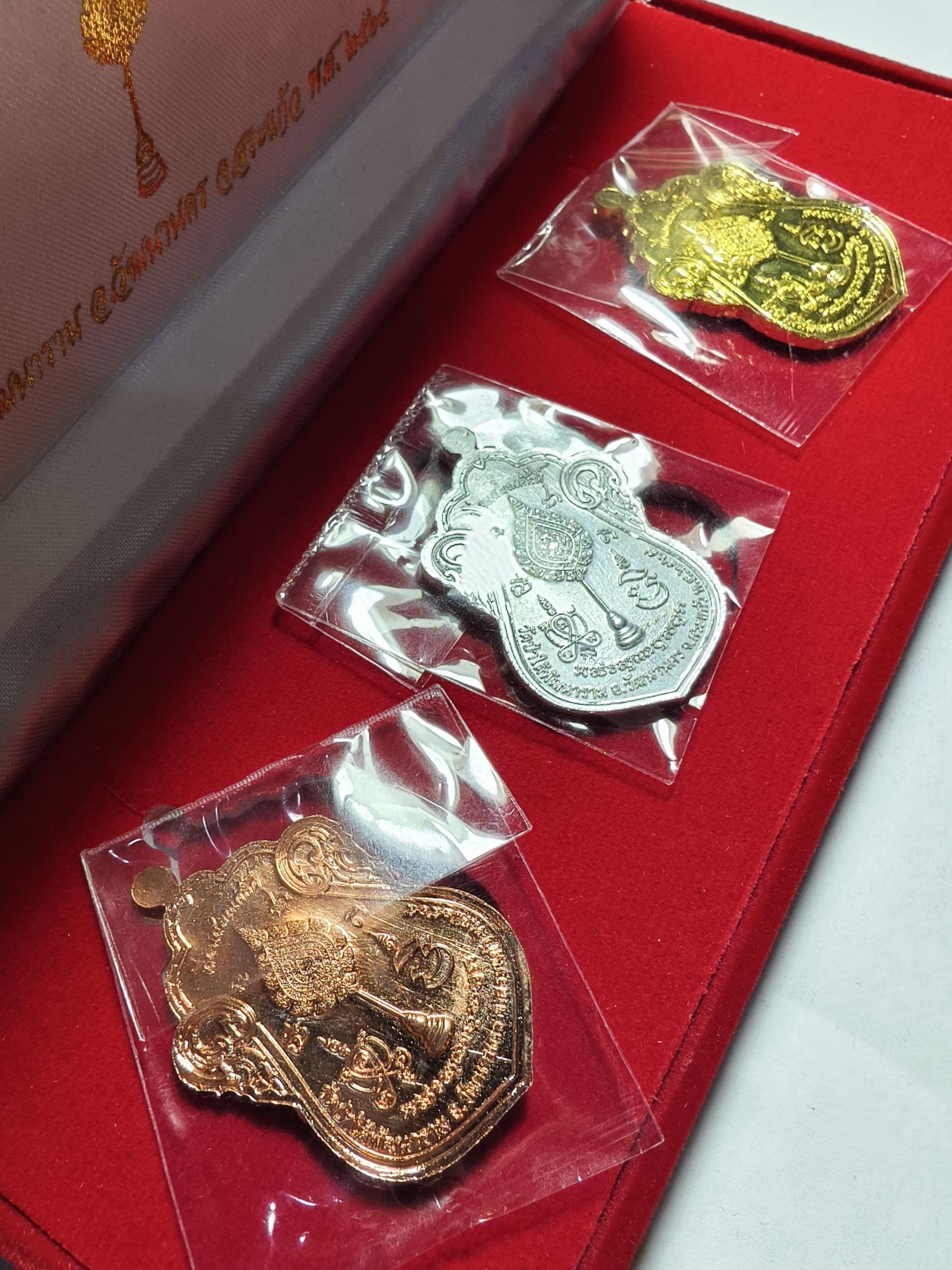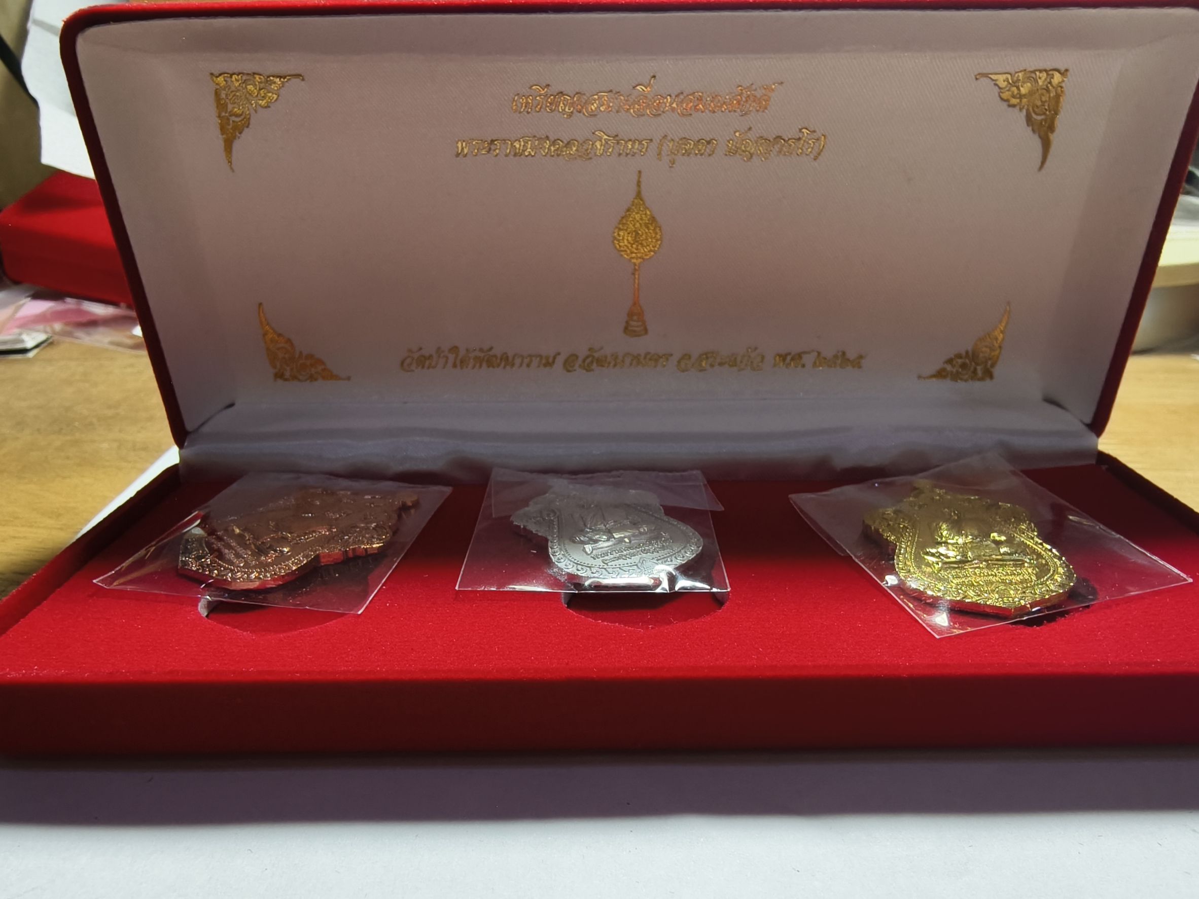 หลวงปู่บุดดา วัดป่าใต้ ชุดของขวัญ เหรียญเลื่อนสมณศักดิ์ กล่องกำมะหยี่ ชุด 3 องค์ AC2427