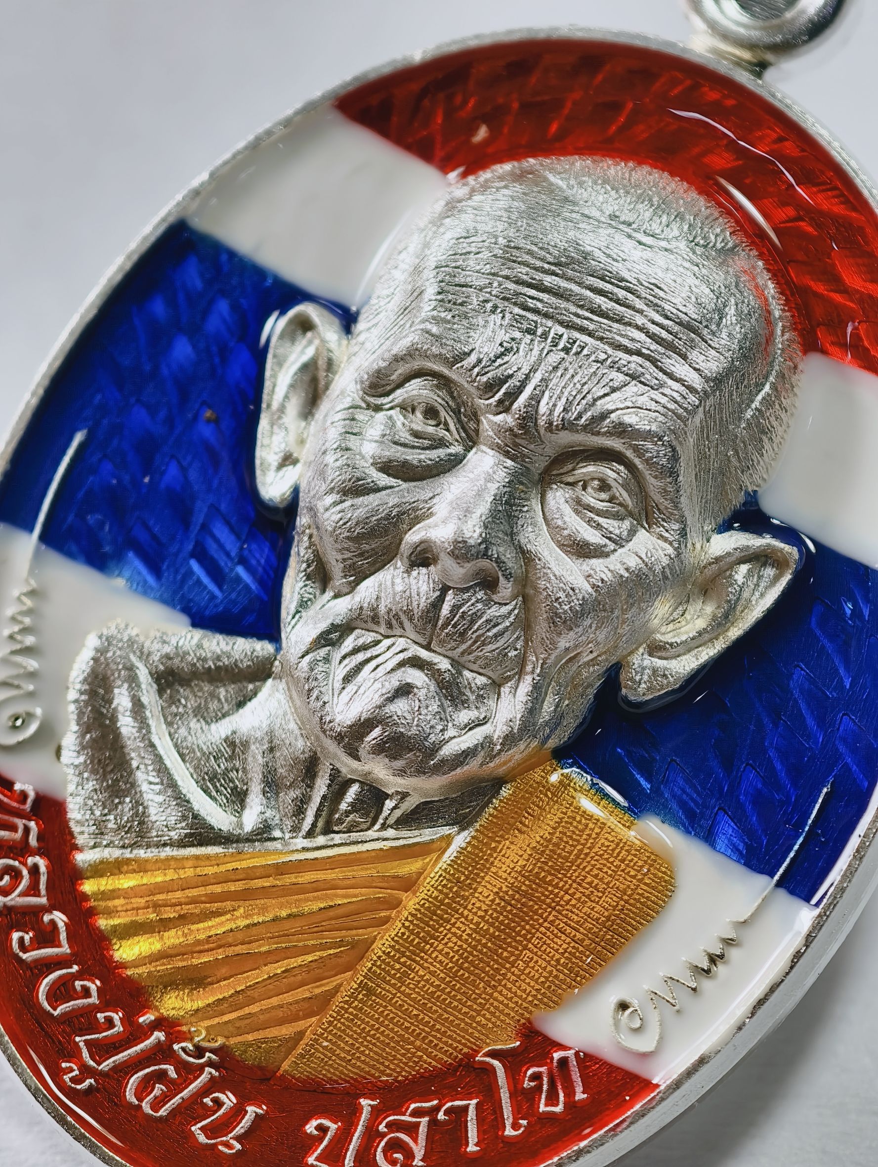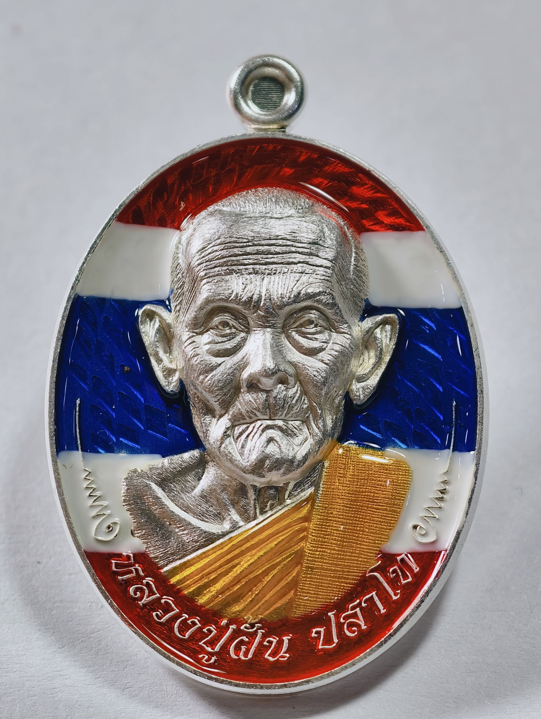 หลวงปู่ฝั้น วัดหน้าผา มนต์พระกาฬ ปราบไพรี ลงยา กล่องเดิม AC7321