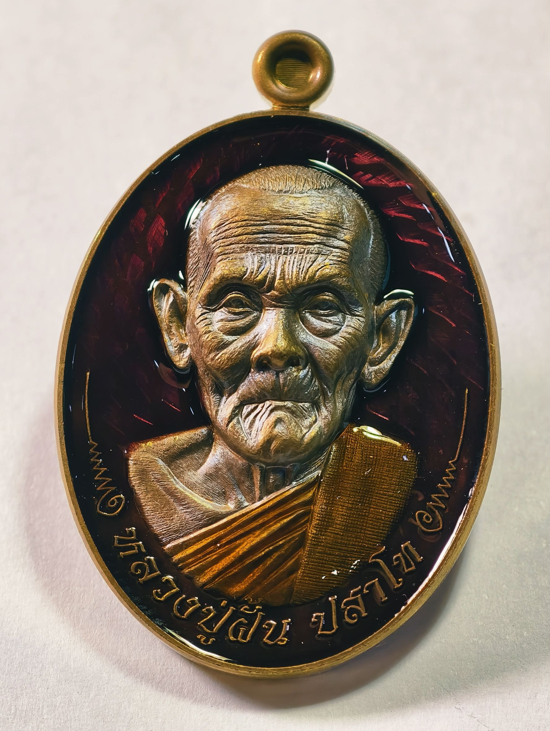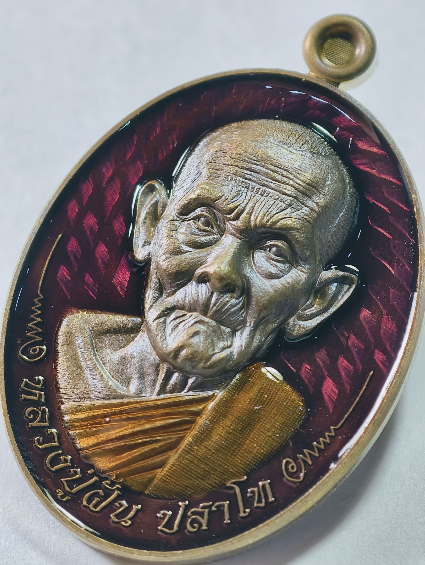 หลวงปู่ฝั้น วัดหน้าผา มนต์พระกาฬ ปราบไพรี ลงยา กล่องเดิม AC7328