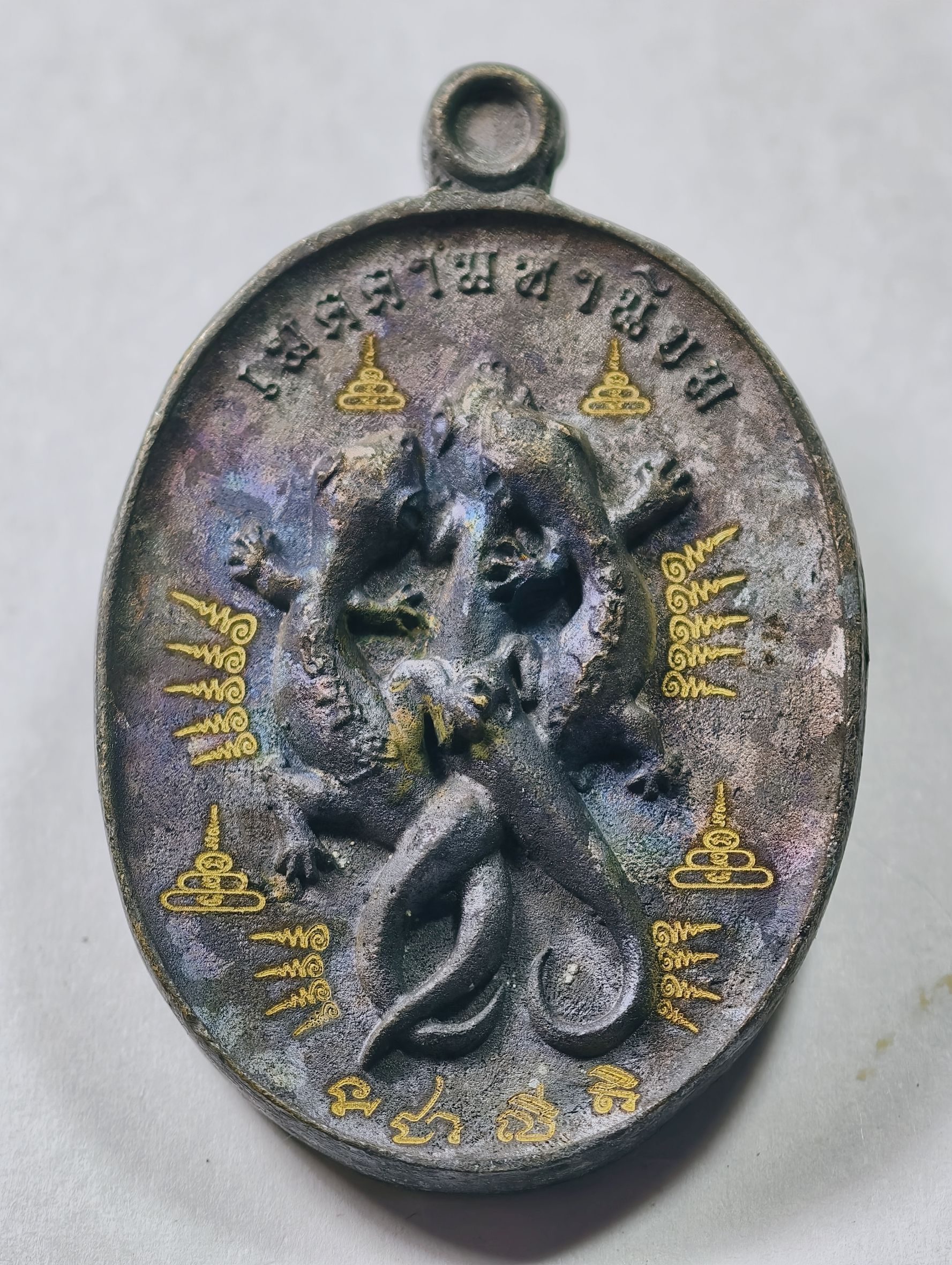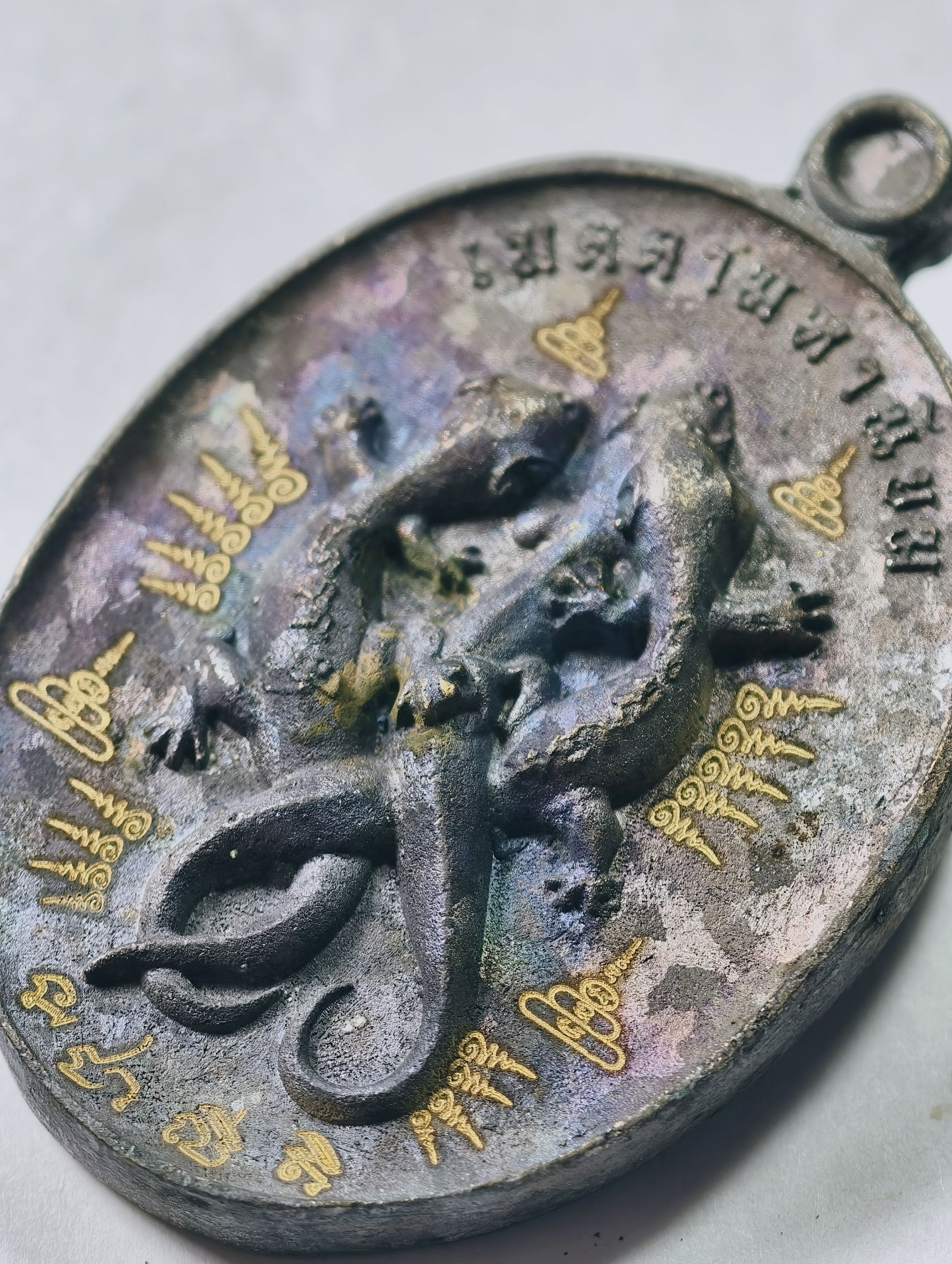 หลวงปู่ฝั้น วัดหน้าผา เหรียญหล่อจิ้งจก เนื้อมหาชนวนเก่า เลข 999
