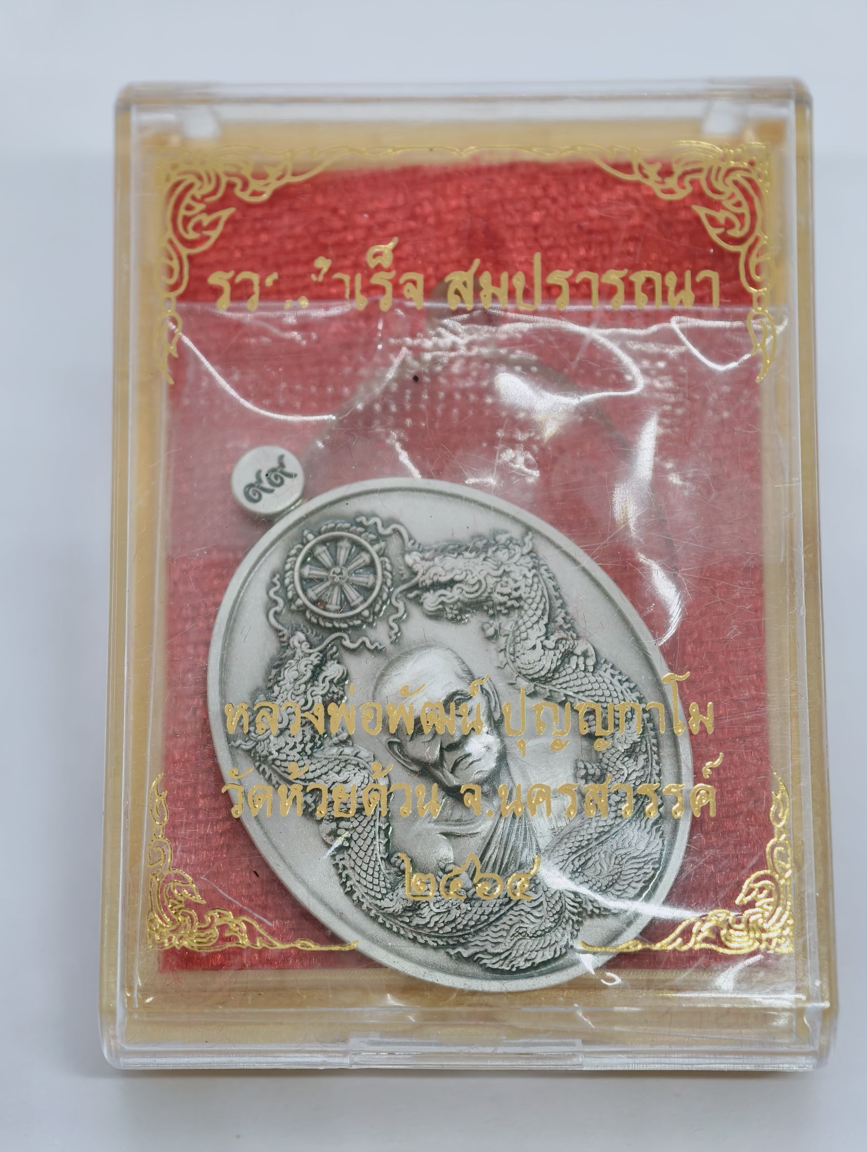 หลวงปู่พัฒน์ วัดห้วยด้วน เหรียญรวยสำเร็จ สมปรารถนา เนื้อเงิน บริสุทธิ์ รมซาติน (KA3115)