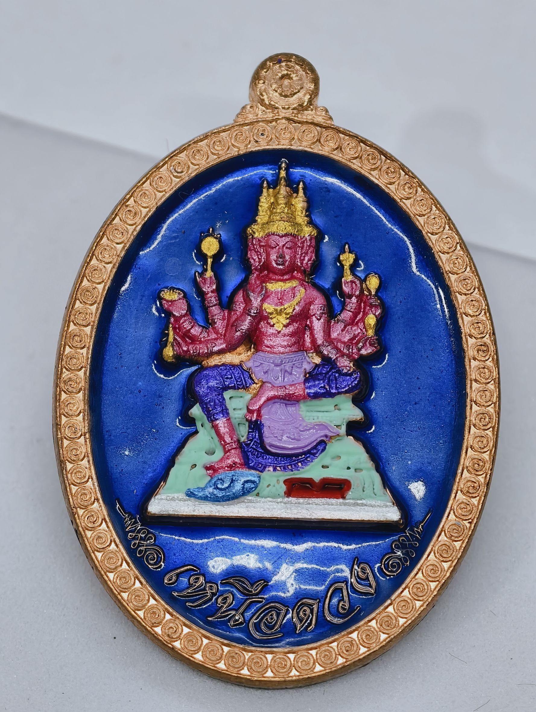 หลวงปู่มหาศิลา วัดพระธาตุหมื่นหิน พระพรหมเหนือดวง ลงยา น้ำเงิน KA3329