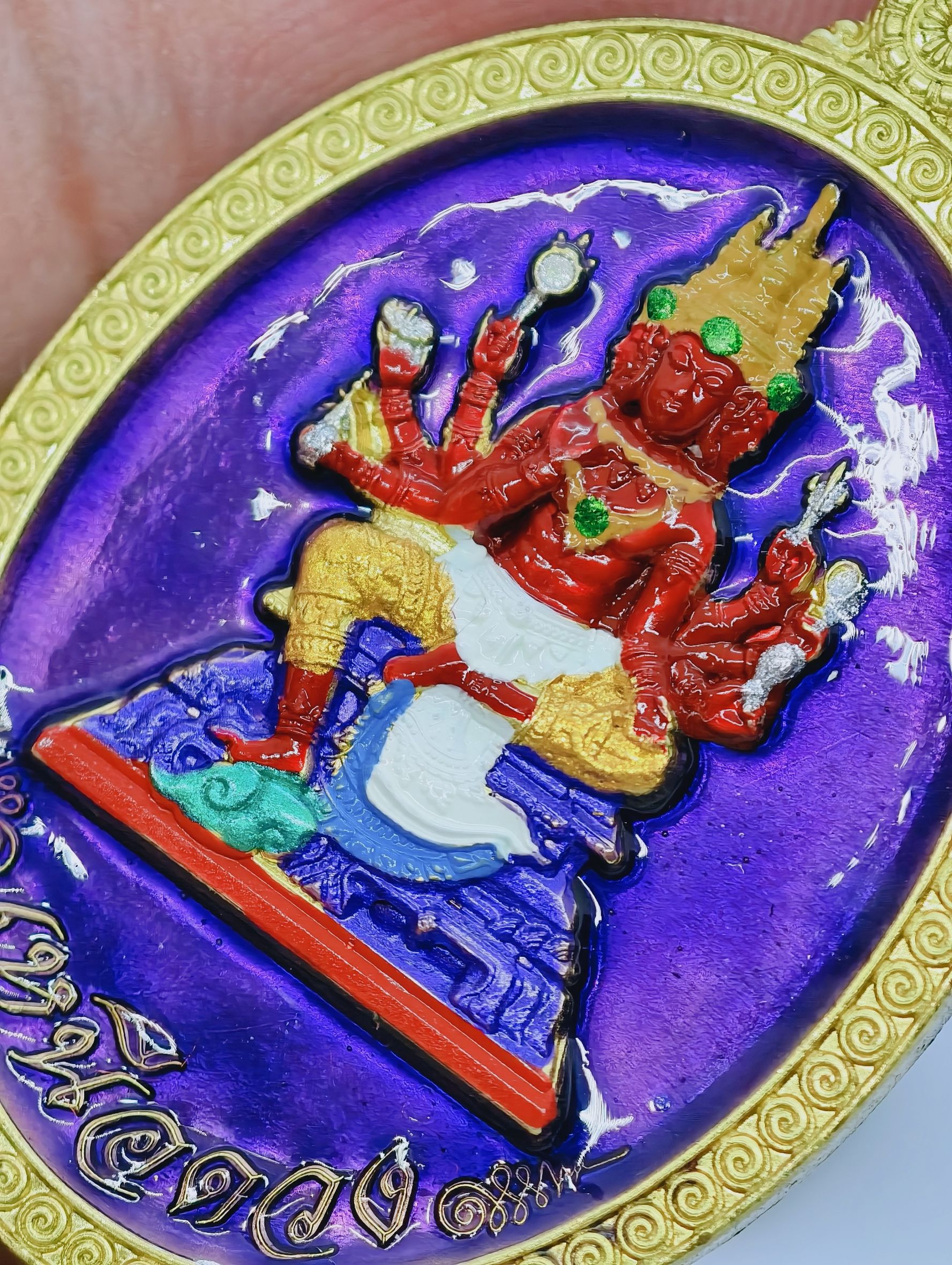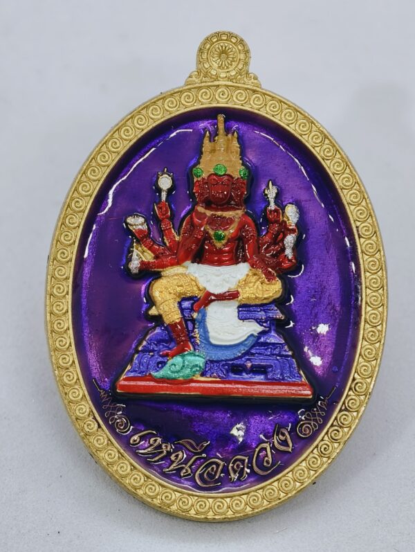 หลวงปู่มหาศิลา วัดพระธาตุหมื่นหิน พระพรหมเหนือดวง ลงยา ม่วง KA3319