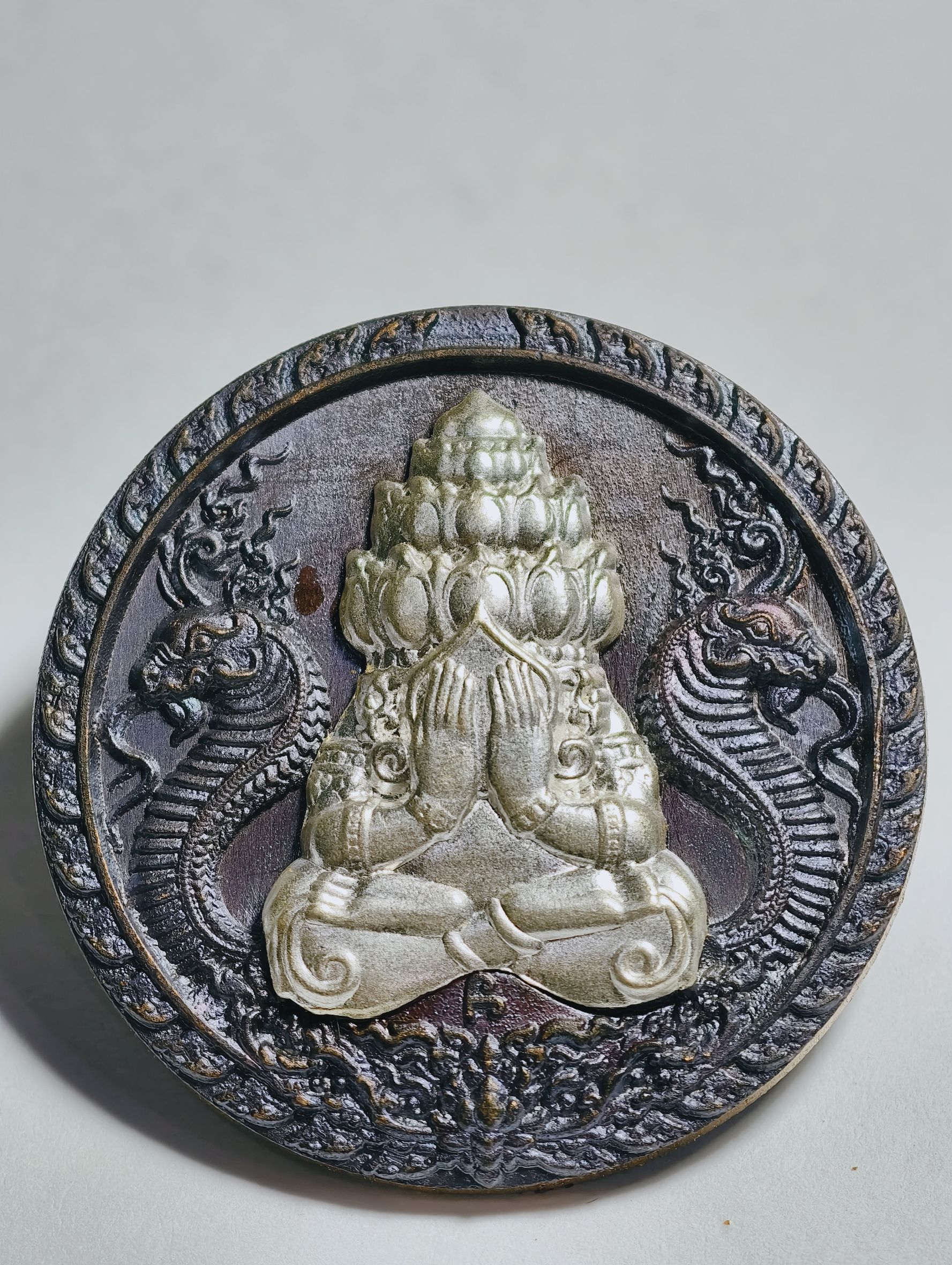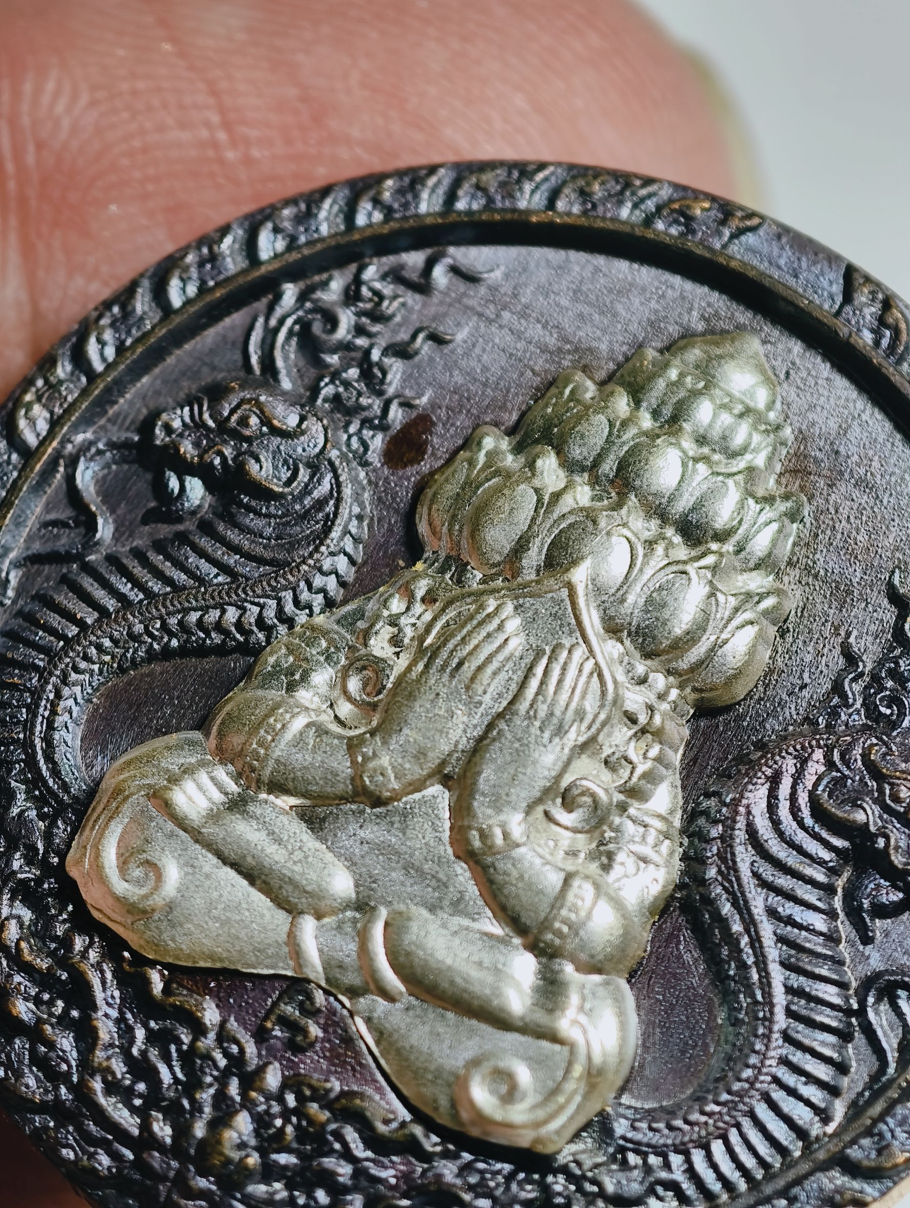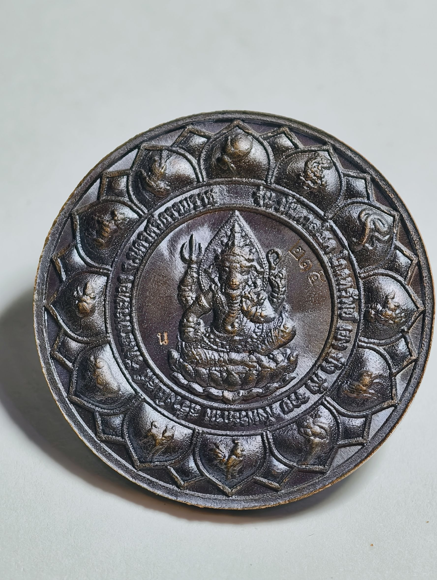 หลวงปู่มหาศิลา วัดพระธาตุหมื่นหิน พระปิดตาพังพระกาฬ หลัง พระพิฆเนศบันดาลโชค นวะโลหะหน้ากากเงิน AC2439