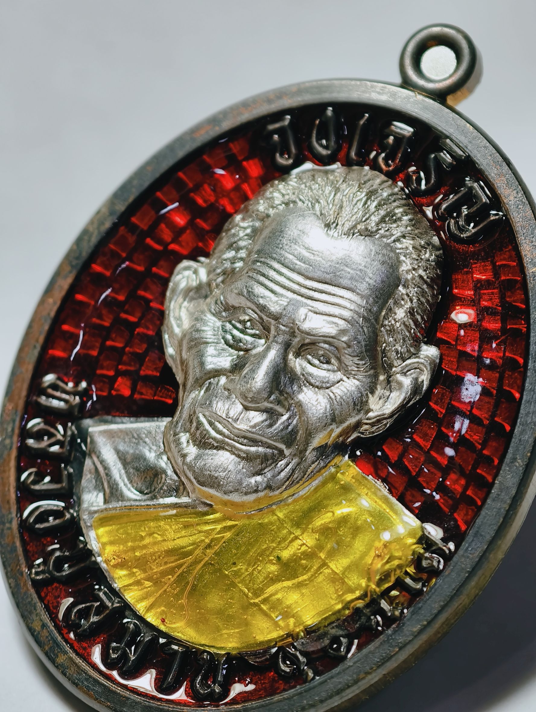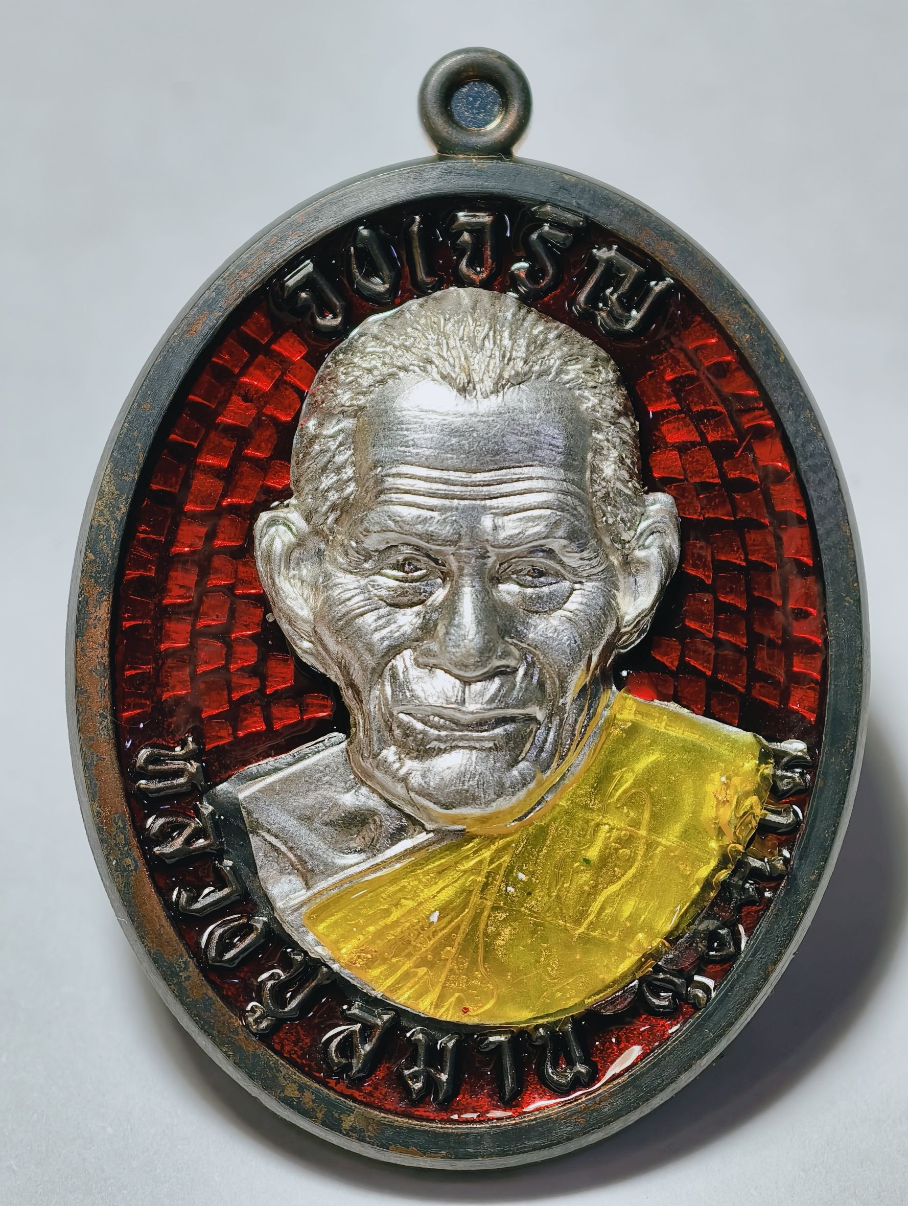 หลวงปู่สมาน ที่พักสงฆ์เขายางหัก จ.ราชบุรี เหรียญจงเจริญ ปี66 เนื้อนวะโลหะ ลงยาแดง หน้ากากเงิน เลข7 AC8741