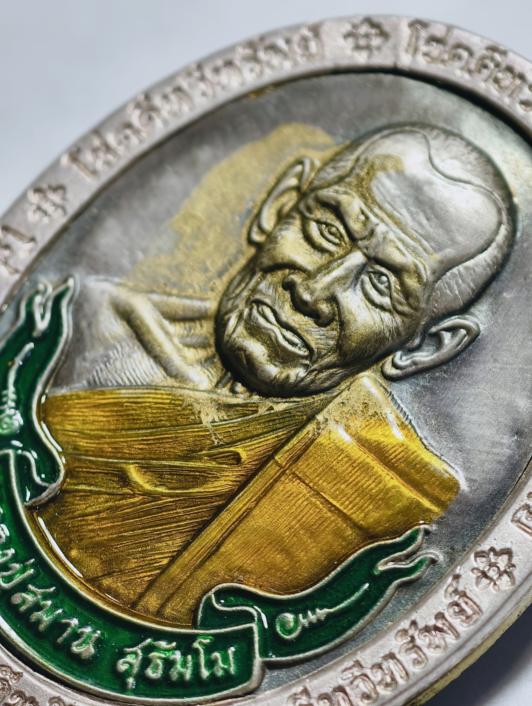หลวงปู่สมาน เขายางหัก เหรียญโชคดีทวีทรัพย์ นวะโลหะนำฤกษ์ ยกหน้ากากเงิน AC3434