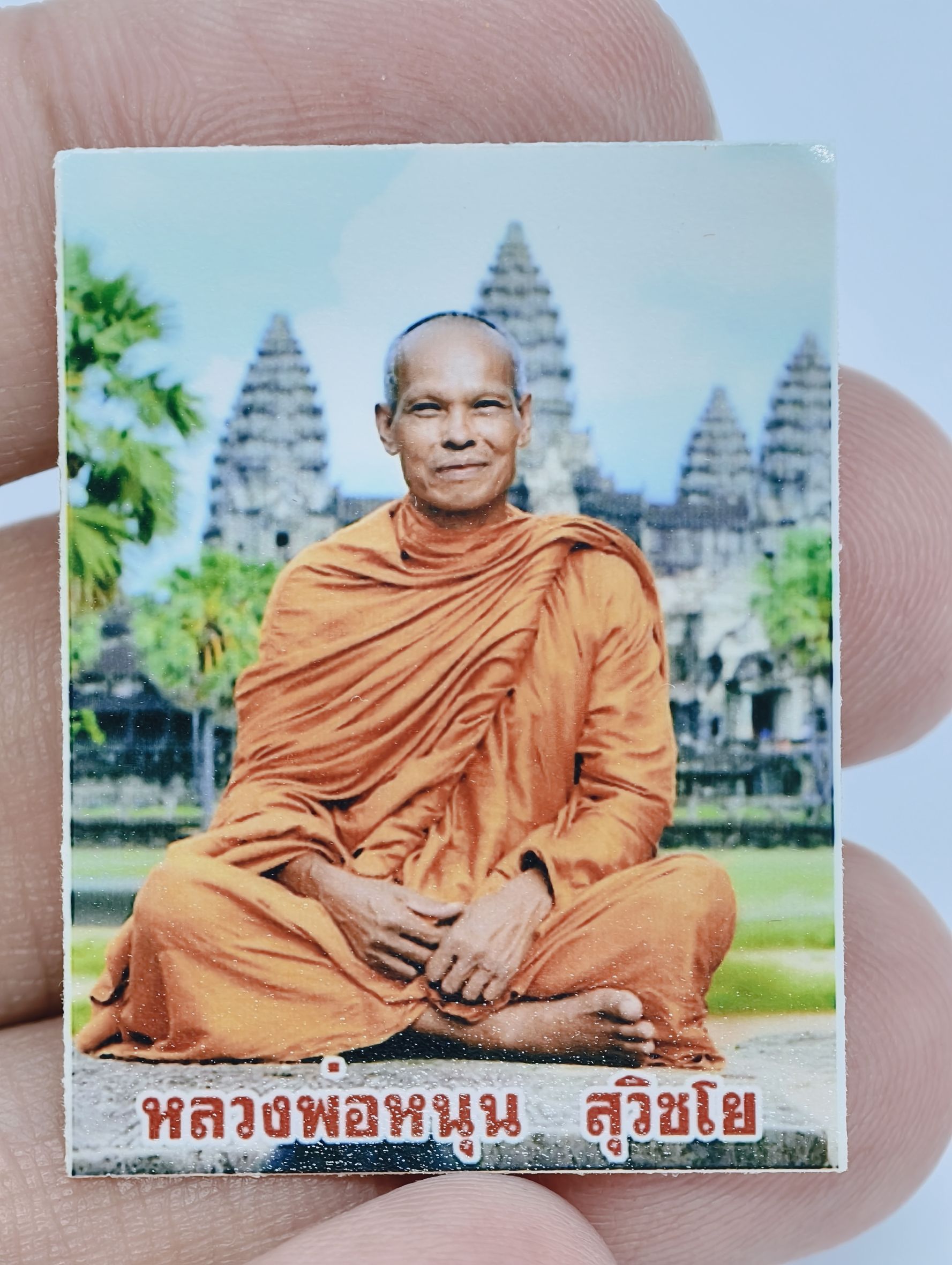 หลวงปู่หนุน วัดพุทธโมกพลาราม แผ่นภาพ รุ่นแรก หลัง แผ่นทองเหลือง ตอกโค้ด KA2821