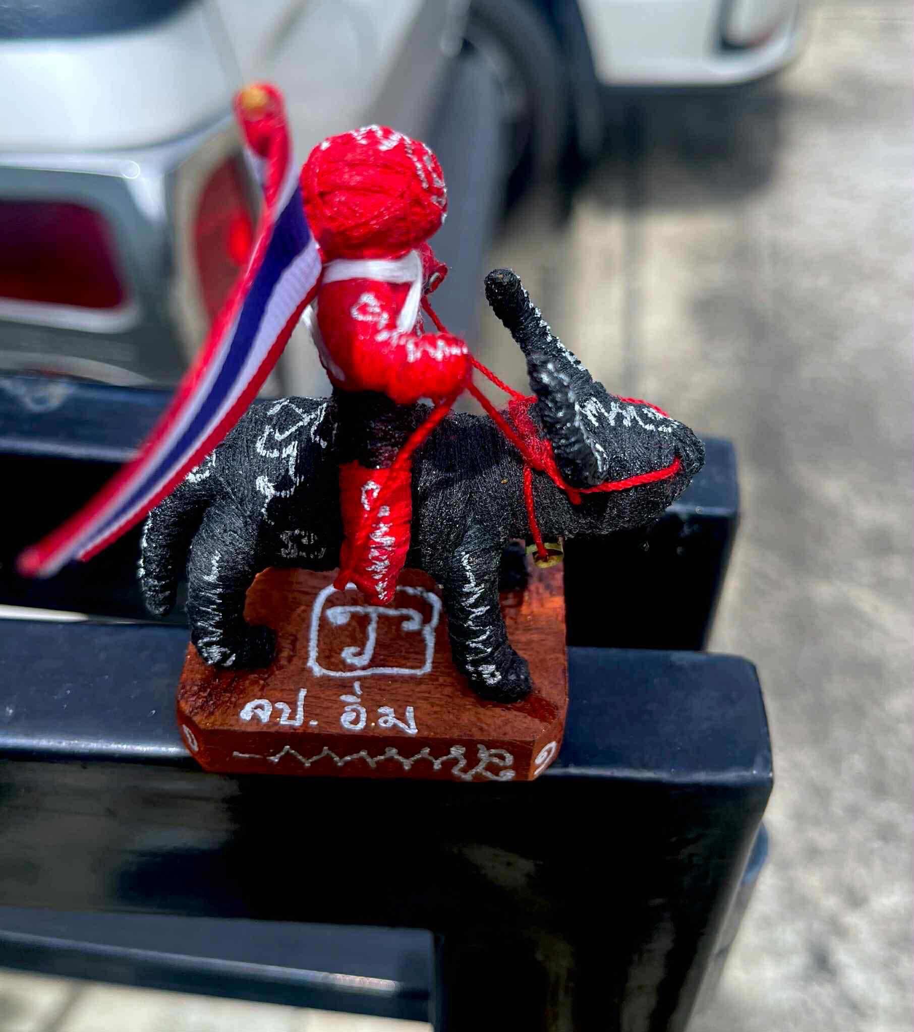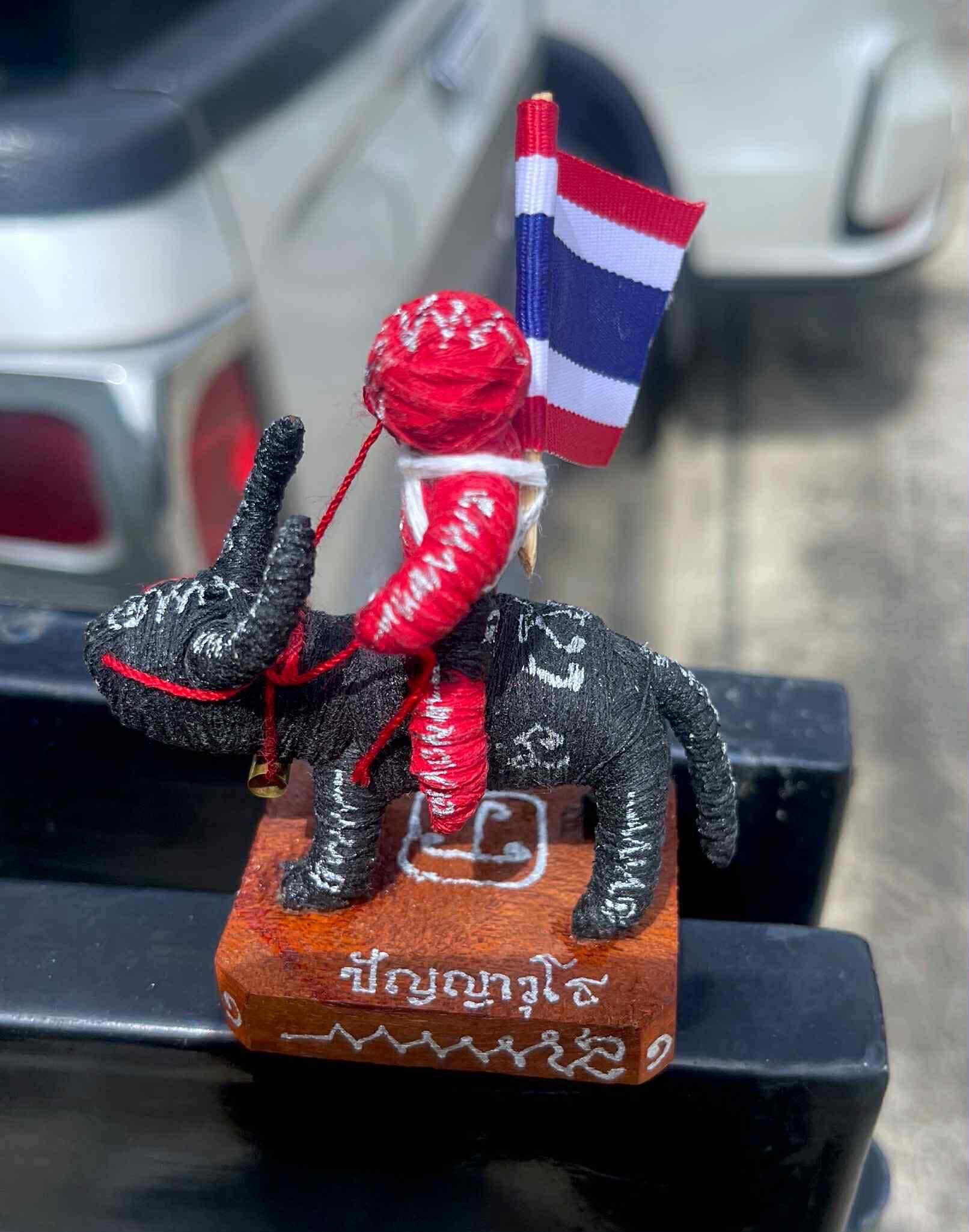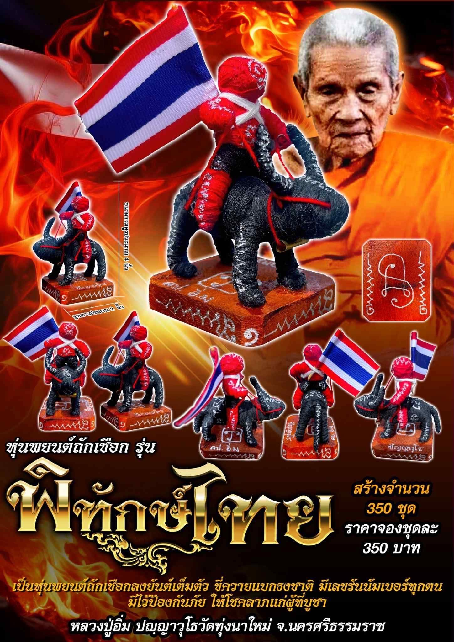 เป็นหุ่นพยนต์ถักเชือกลงยันต์เต็มตัว ขี่ควายแบกธงชาติ มีเลขรันนัมเบอร์ทุกตน