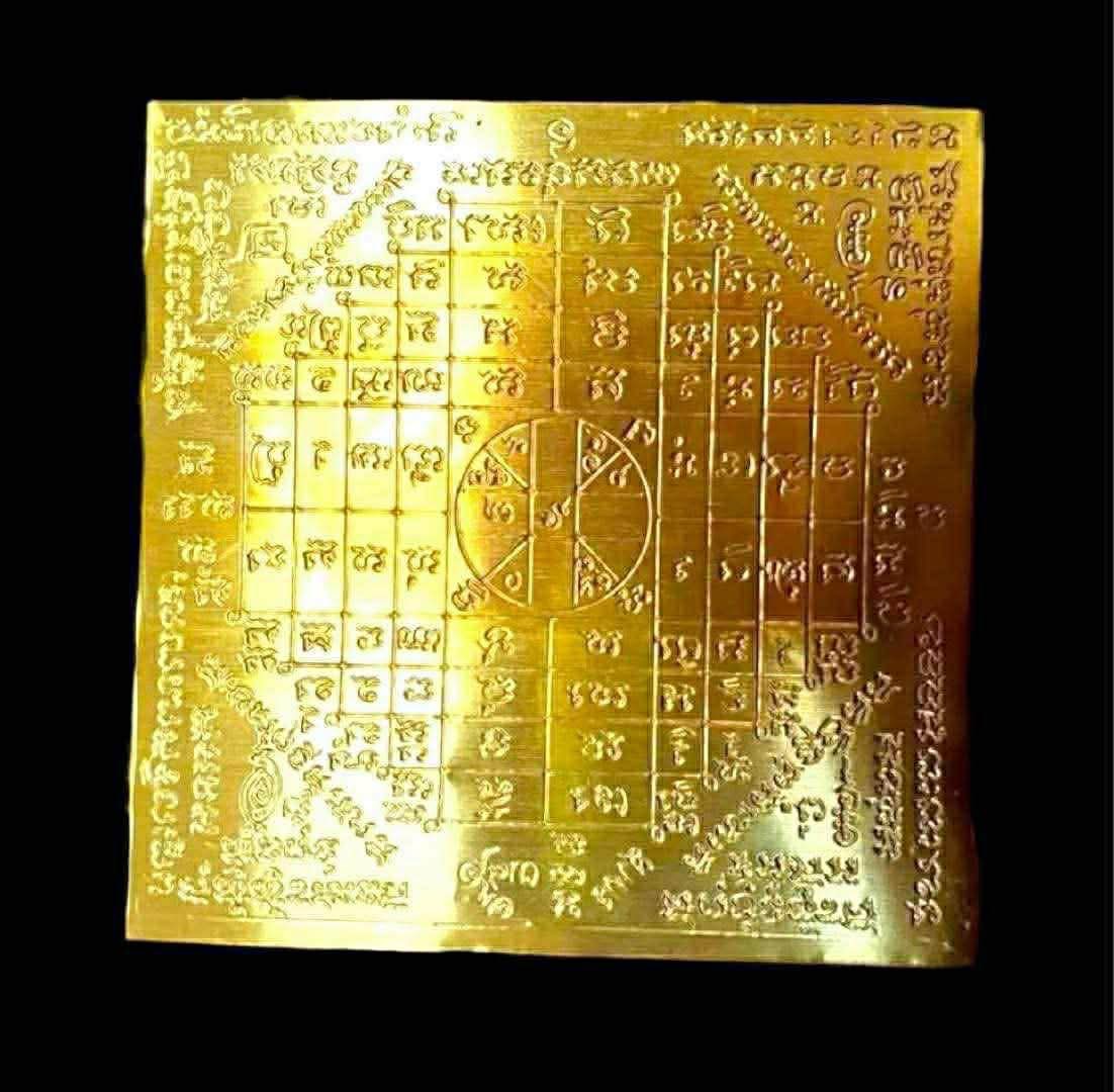 ตะกรุดแผ่นทองเหลือง ปั๊มยันต์พิชัยสงครามขนาด 5 × 5 นิ้วทั้ง 3 ดอก