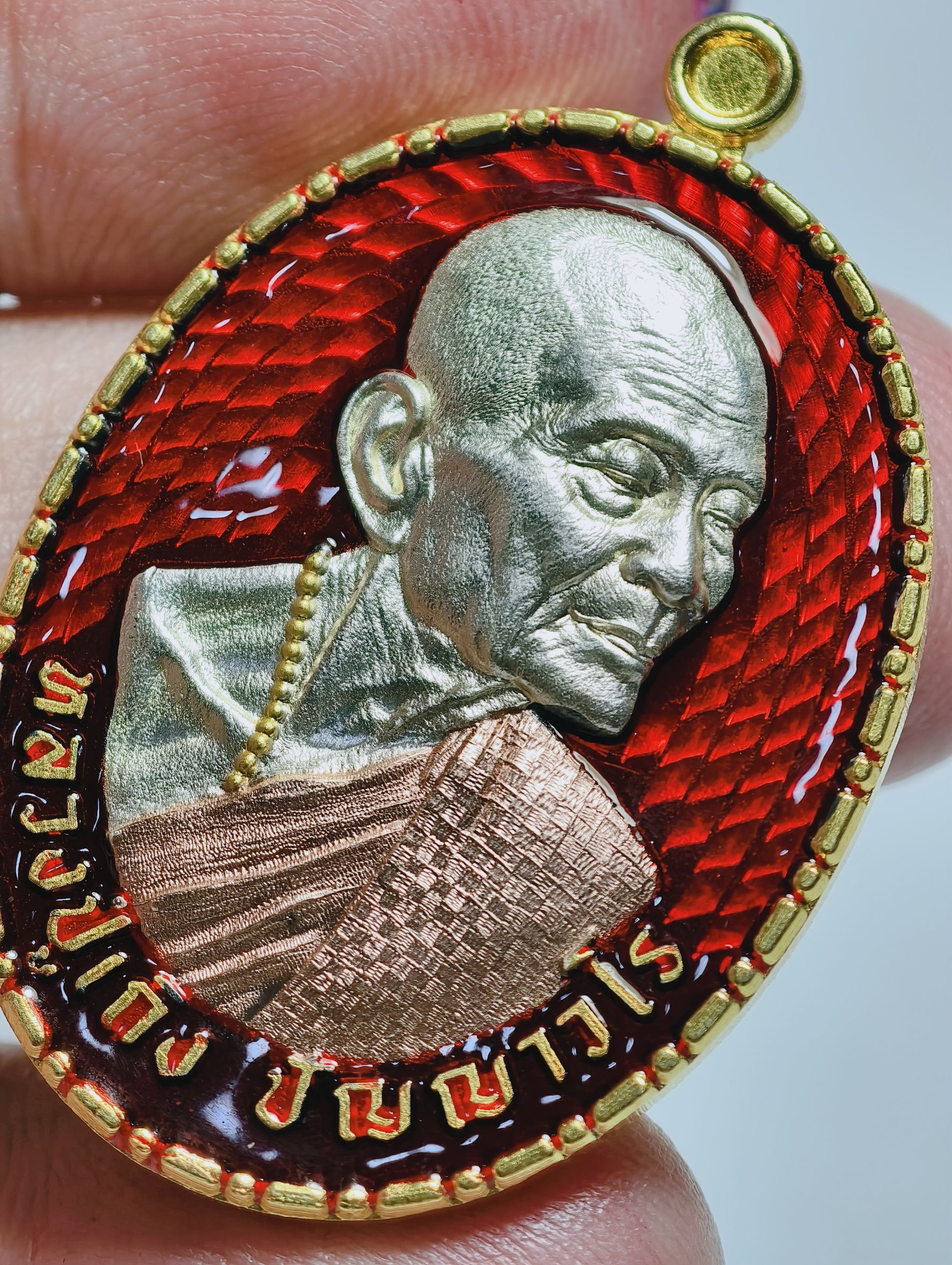 หลวงปู่เถิง วัดบ้านอาลัย เหรียญมงคลทรัพย์ 4K ลงยา AC3128