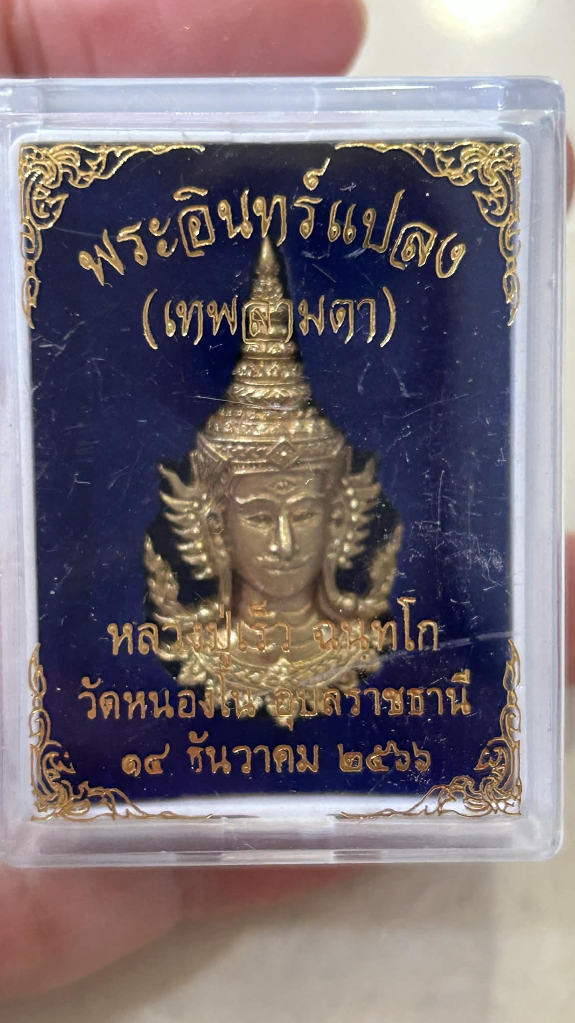 หลวงปู่เร็ว วัดหนองโน พระอินทร์แปลง เทพสามตา ปี 2566 เนื้อทองฝาบาตร (KU31)