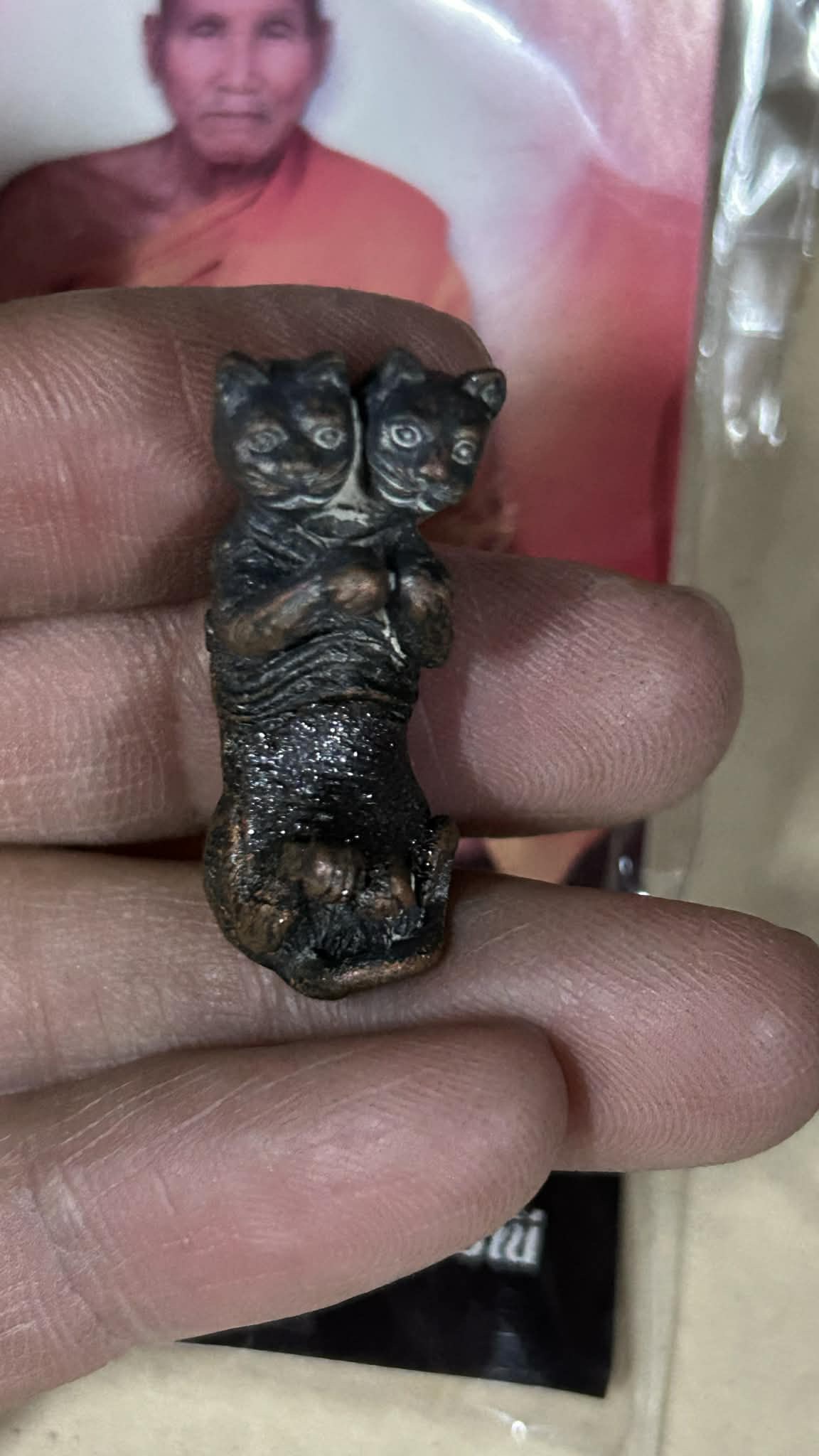 หลวงปู่เร็ว วัดหนองโน ลูกกรอกแมวคู่ชีวิต 2560 เนื้อทองแดง ยาว 1 นิ้ว (KU25)