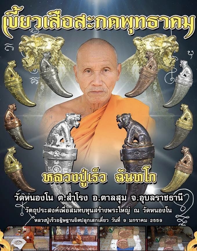 หลวงปู่เร็ว วัดหนองโน เขี้ยวเสือสะกดพุทธาคม ปี 2559 เนื้อสัตตะโลหะ (KU16)