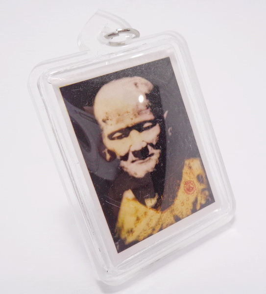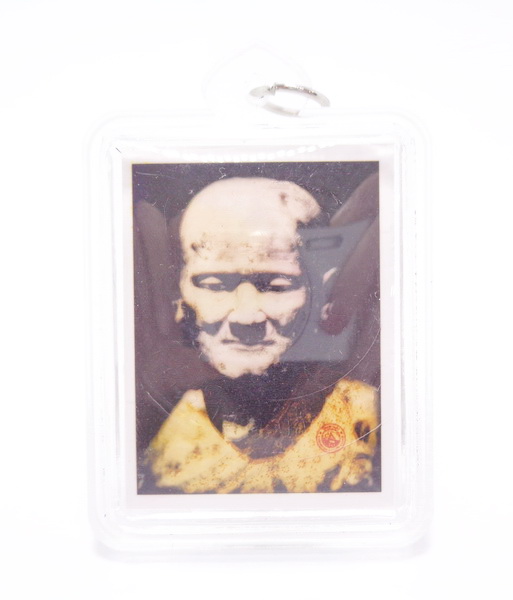 หลวงปู่เอี่ยม วัดสะพานสูง รูปถ่ายฉากดำ รุ่น ปฐมนาม 130 ปี หลังปั้มตรา+พระผง เลี่ยมกรอบ KN1202264