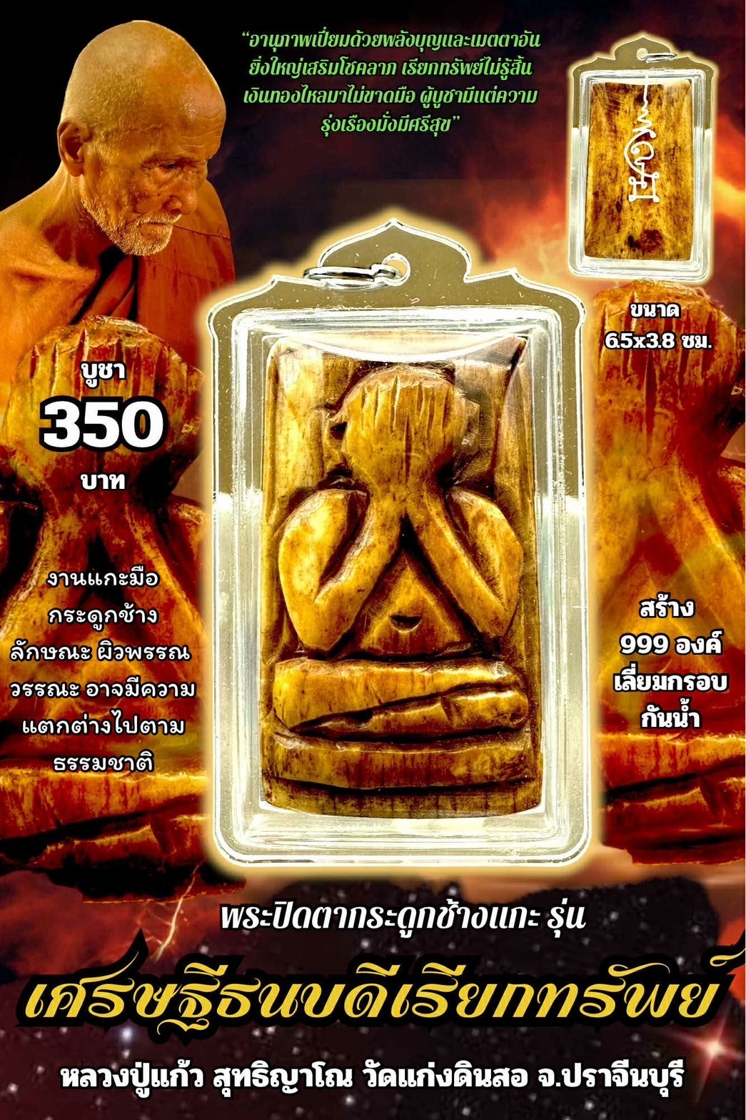พระปิดตากระดูกช้างแกะ รุ่น เศรษฐีธนบดีเรียกทรัพย์ (พร้อมกรอบกันน้ำ)