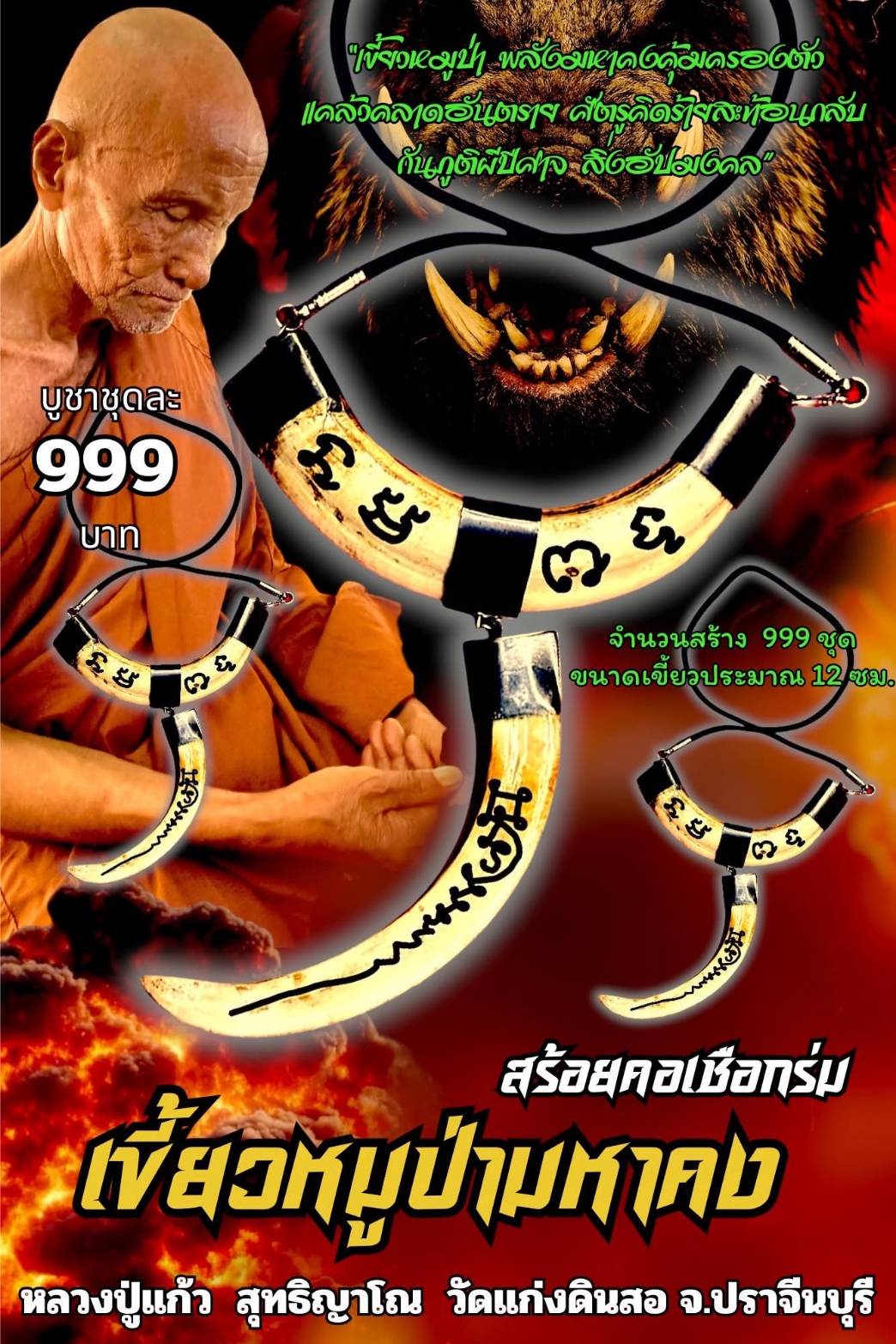 หลวงปู่แก้ว วัดแก่งดินสอ สร้อยคอเชือก รุ่น เขี้ยวหมูป่ามหาคง