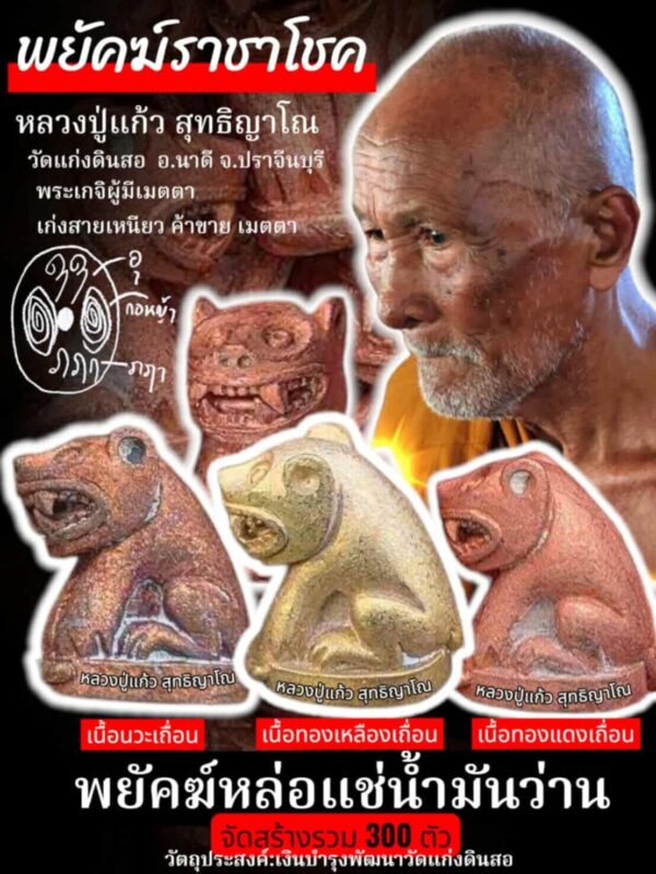 หลวงปู่แก้ว วัดแก่งดิยสอ พยัคฆ์ราชาโชค หล่อแช่น้ำมันว่าน