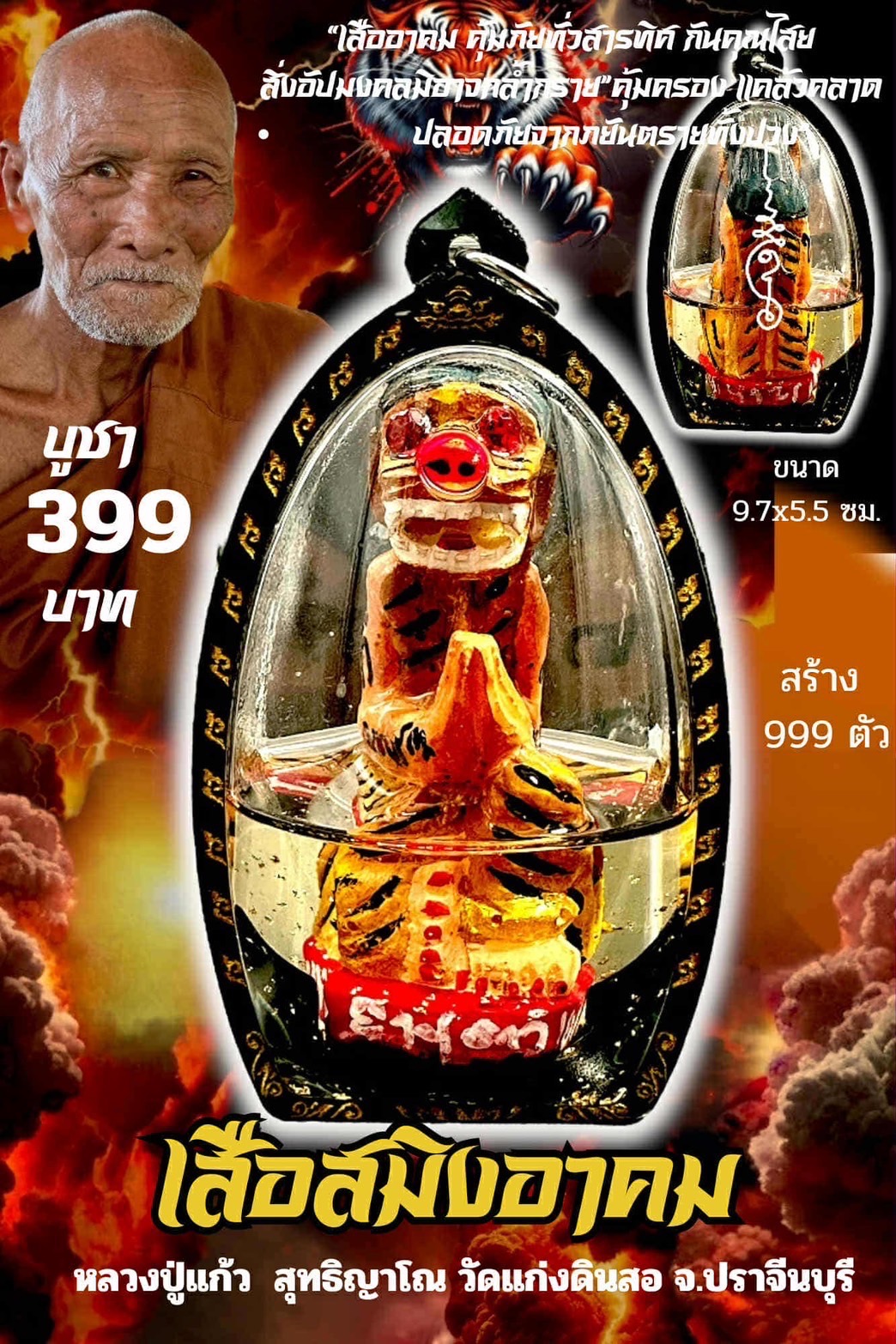 หลวงปู่แก้ว สุทธิญาโณ วัดแก่งดินสอ จังหวัดปราจีนบุรี เสือสมิงอาคม พร้อมเลี่ยม