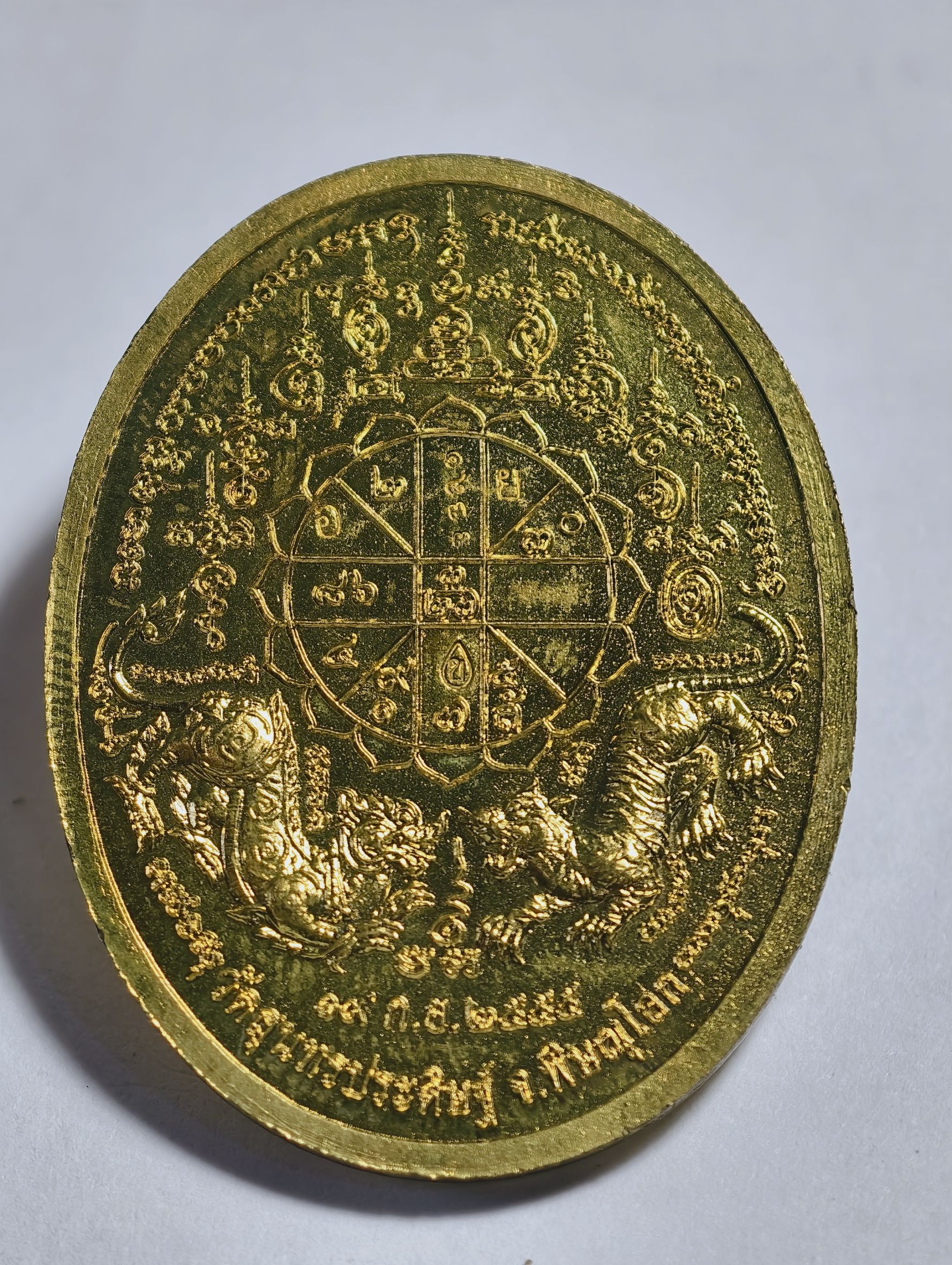 หลวงปู่แขก วัดสุนทรประดิษฐ์ เหรียญอายุยืน มหายันต์ เสือ-สิงห์ (AC7124)