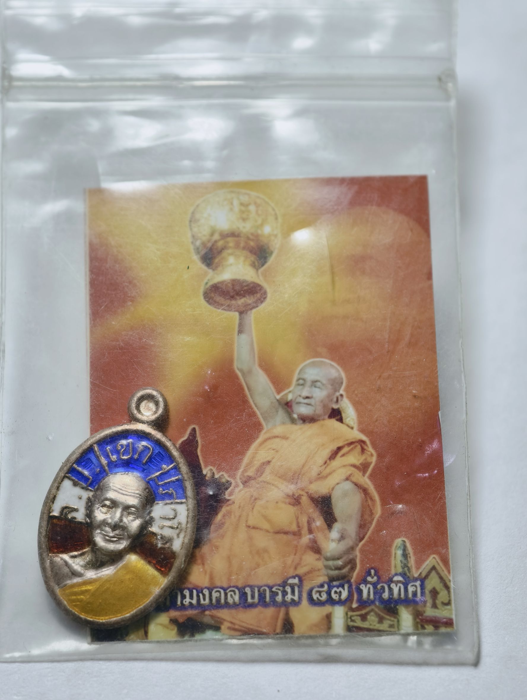 ครึ่งองค์ รุ่นแรก มหามงคล๘๗ ทั่วทิศ เนื้อเงินลงยา ลายธงชาติ (AC3667)