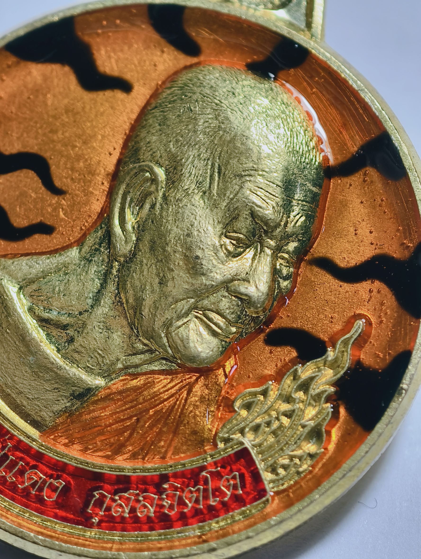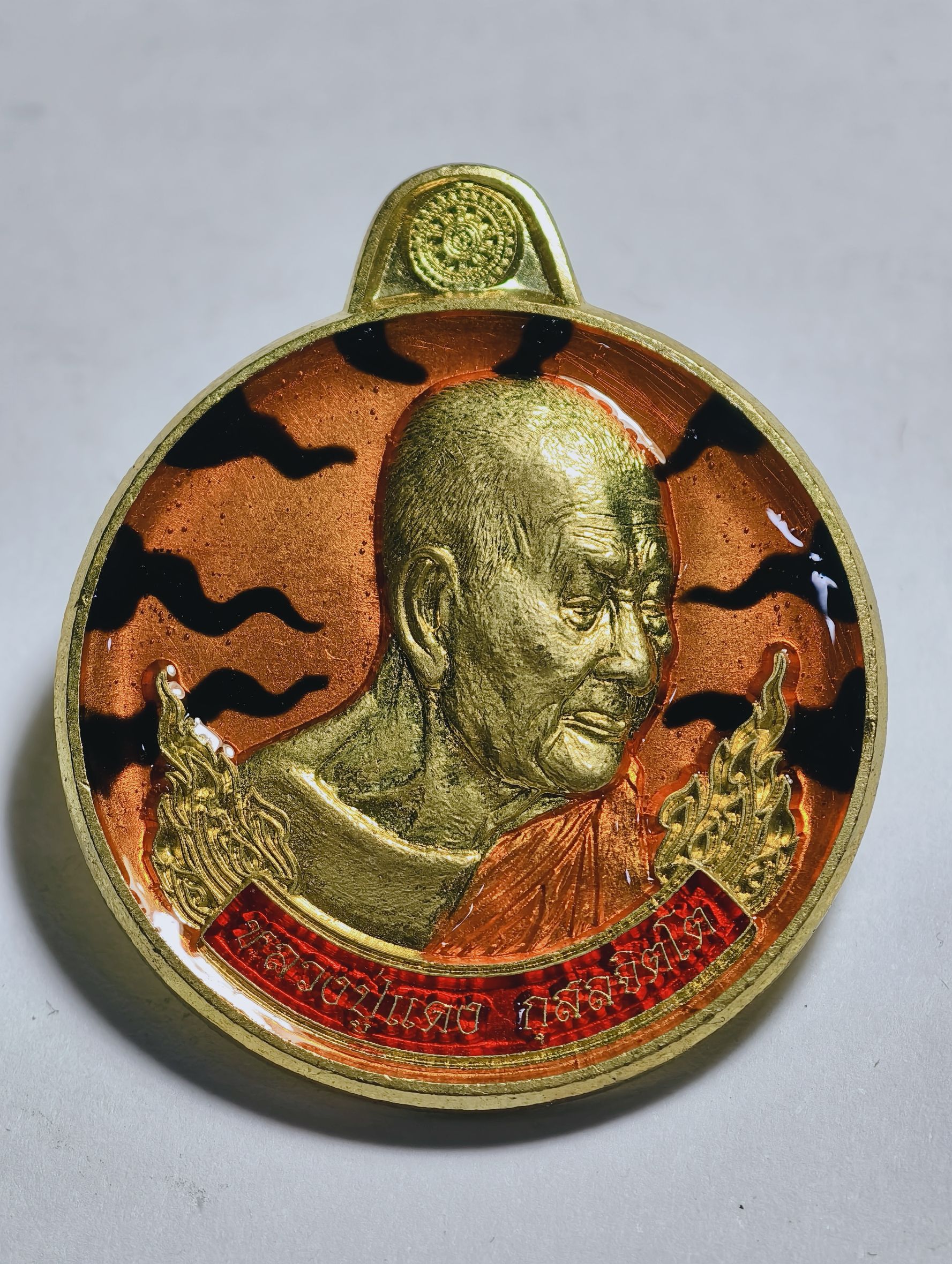 หลวงปู่แดง วัดบ้านใจดี ศรีสะเกษ เหรียญรวยชนะจน ลงยา ลายเสือ AC3236