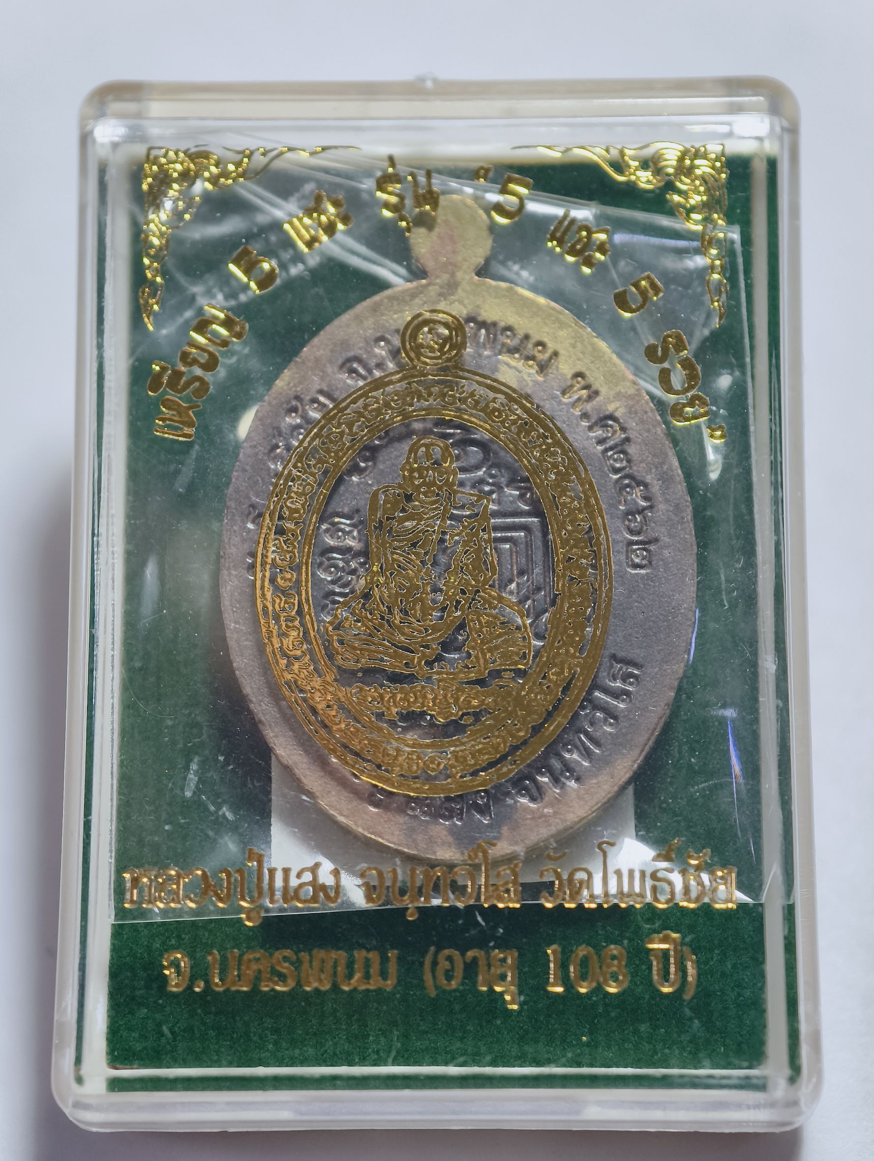หลวงปู่แสง วัดโพธิ์ชัย นครพนม 5 แชะ 5 รวย กล่องเดิม ลงยา 5 แชะ (AC3773)