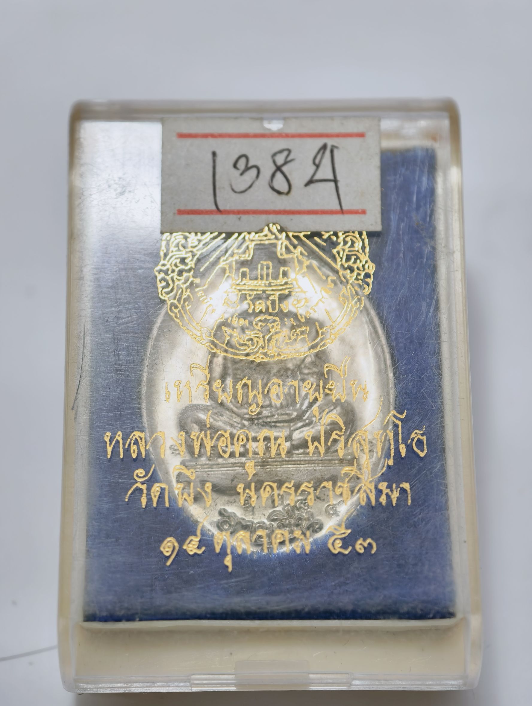 หลวงพ่อคูณ วัดบ้านไร่ จังหวัดนครราชสีมา อายุยืน เนื้อเงิน กล่องเดิม AC5372