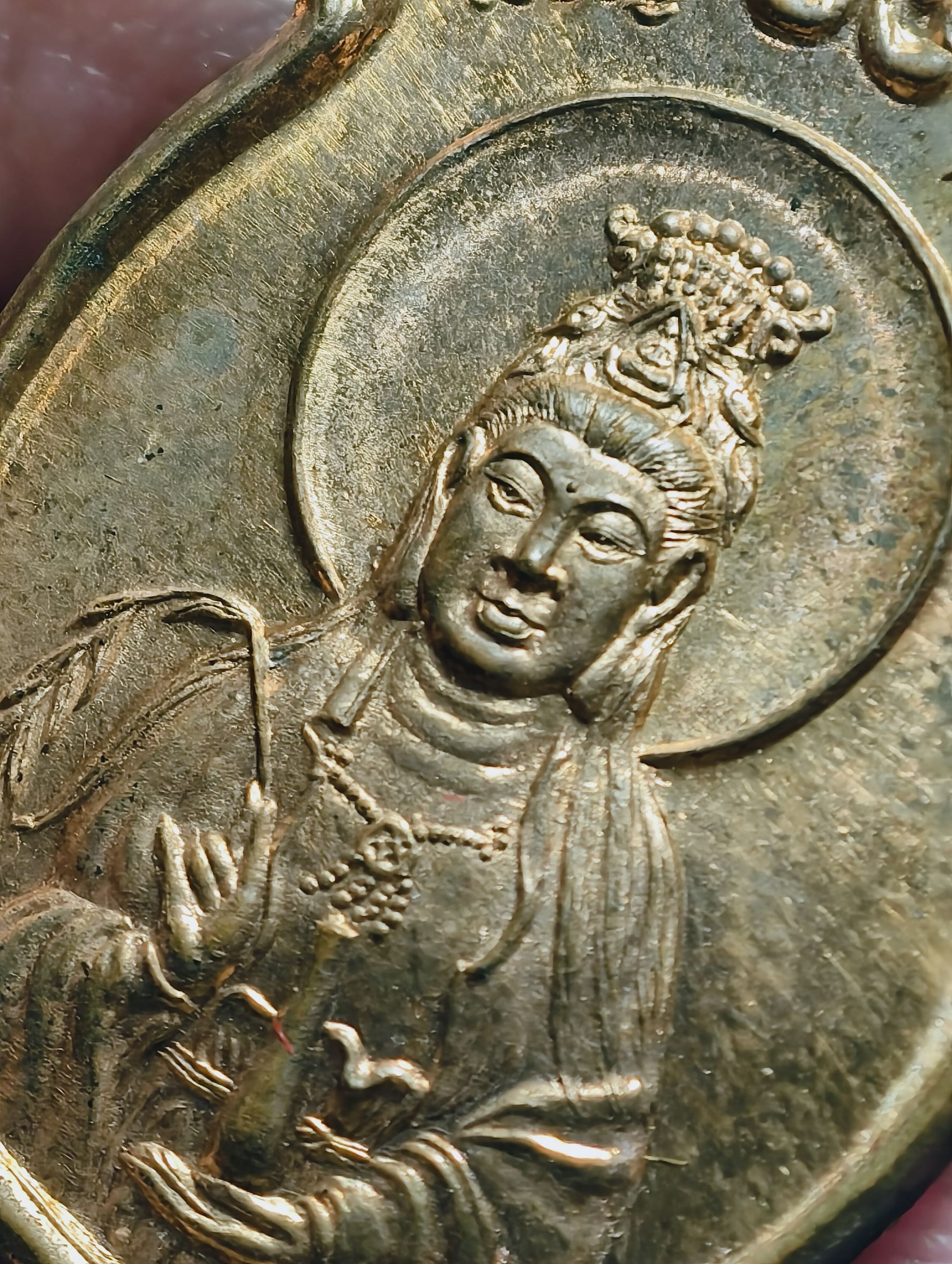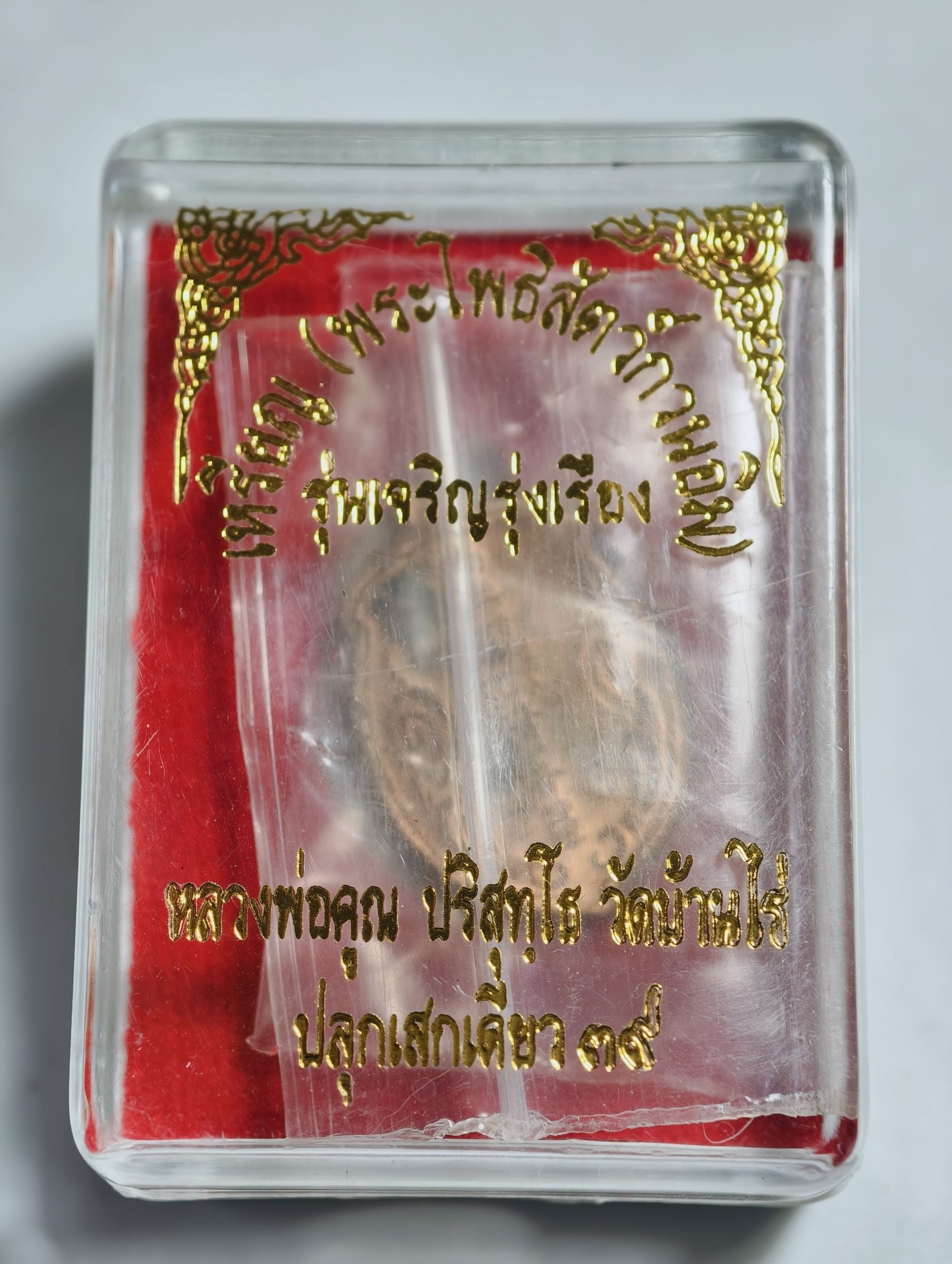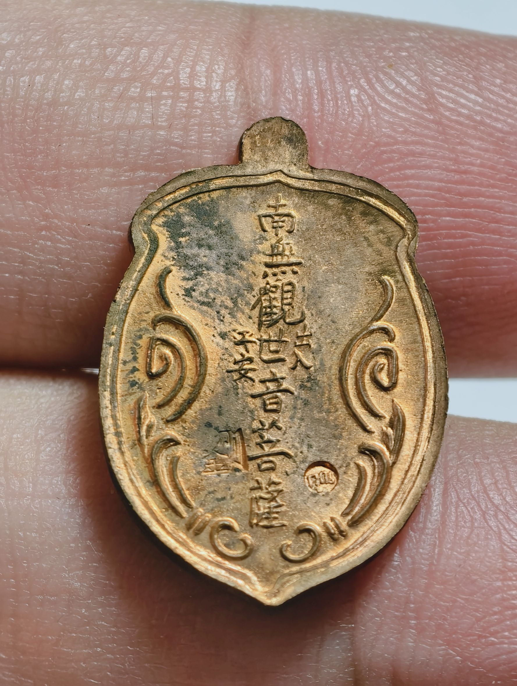 หลวงพ่อคูณ วัดบ้านไร่ เหรียญเจ้าแม่กวนอิม (เหรียญลูกท้อ) เนื้อทองแดง กล่องเดิม (AC1437