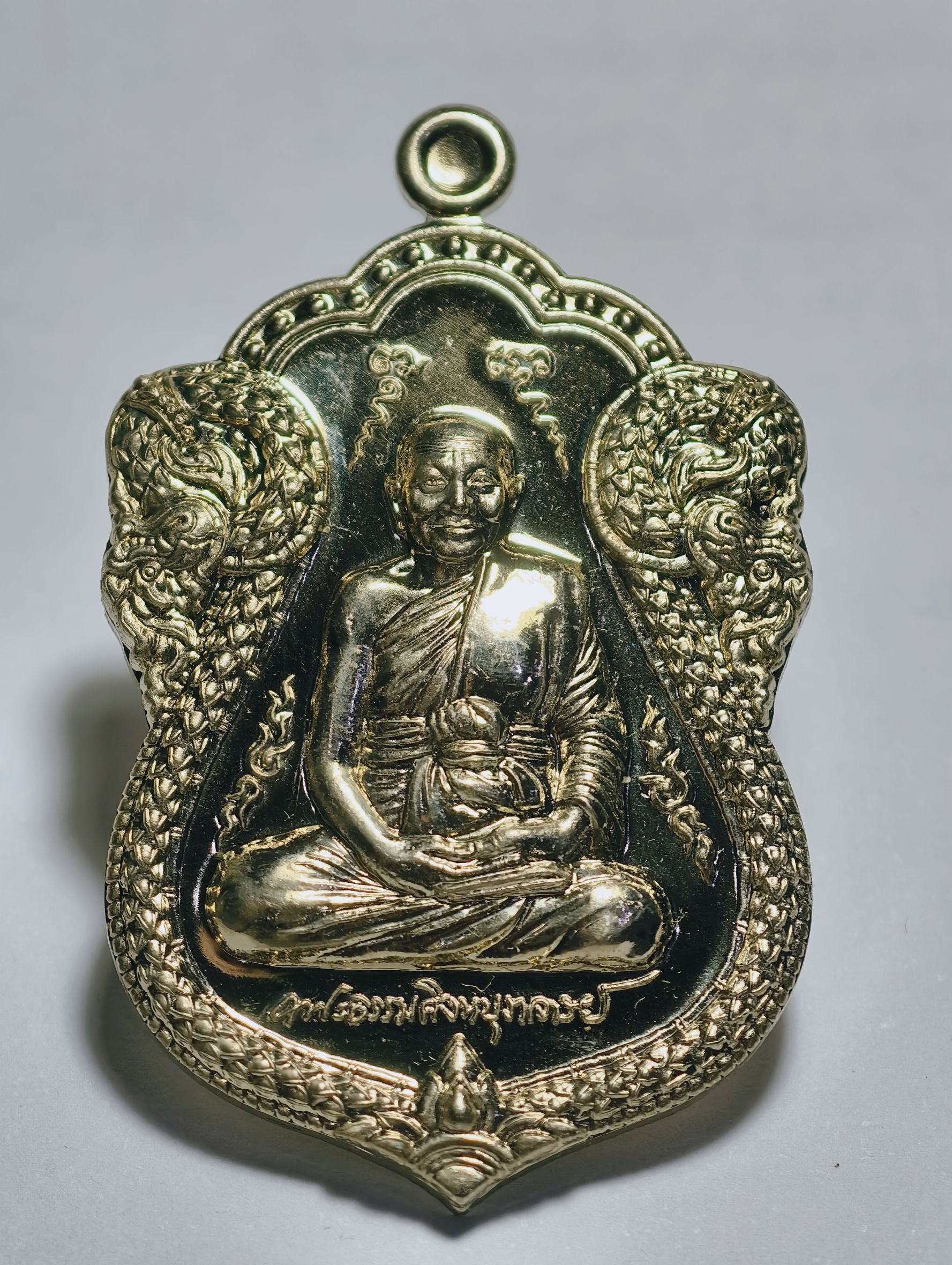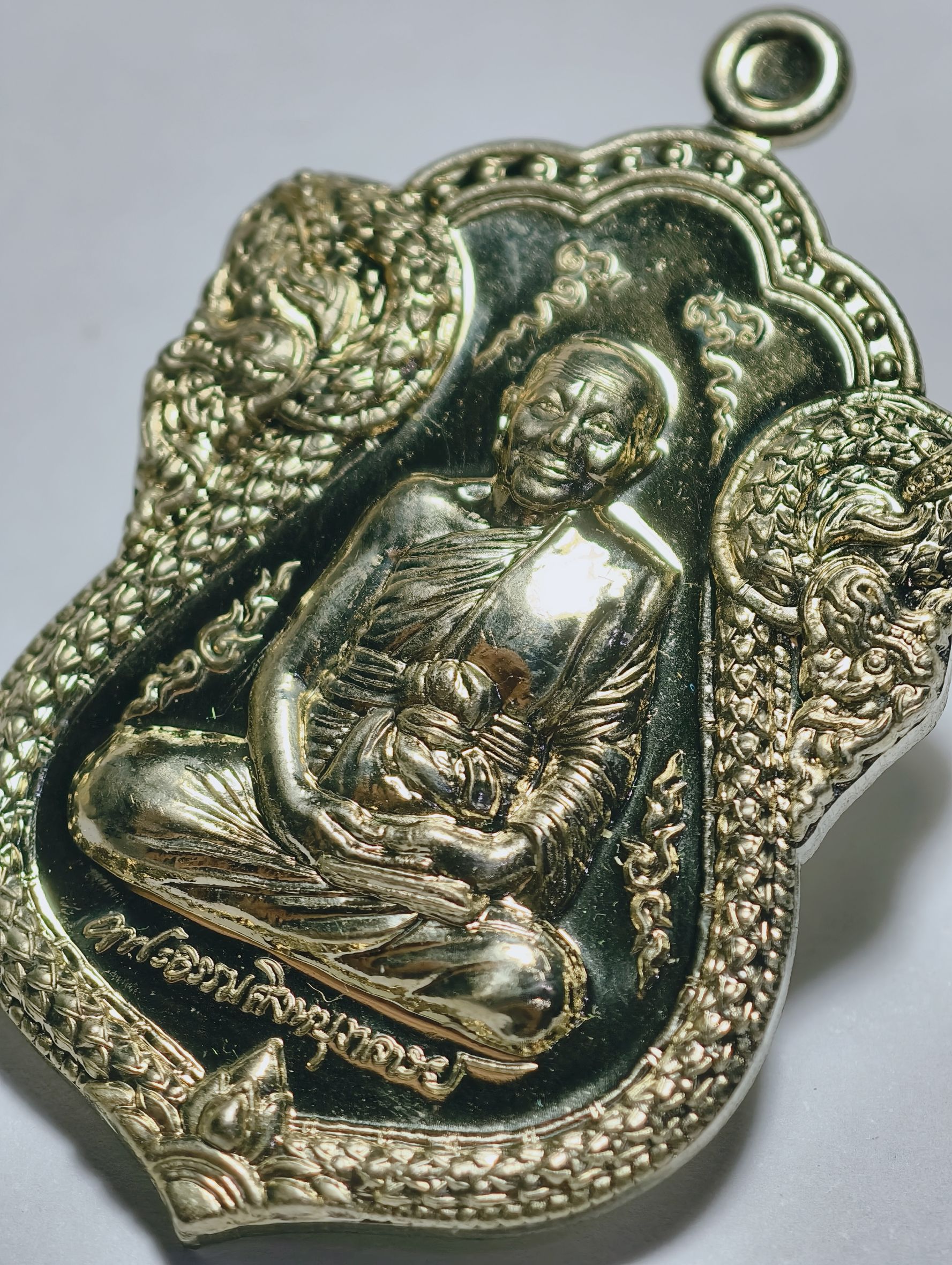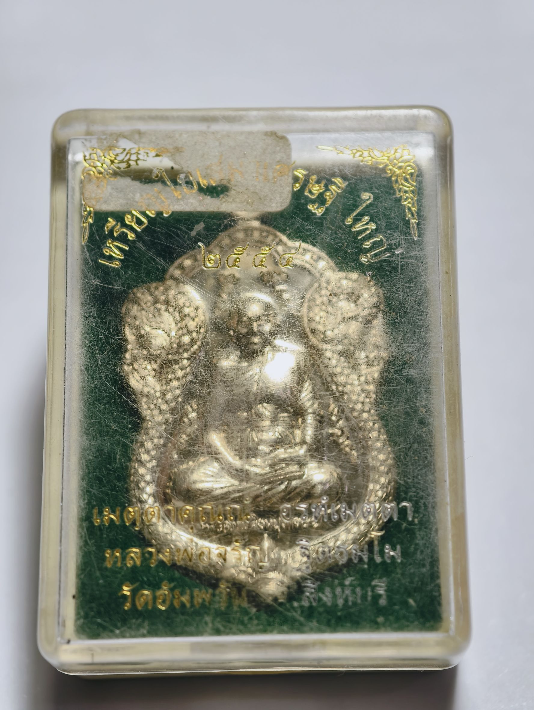 หลวงพ่อจรัญ วัดอัมพวัน เหรียญใบเสมาเศรษฐีใหญ่ 2554 อัลปาก้า (AC6118)