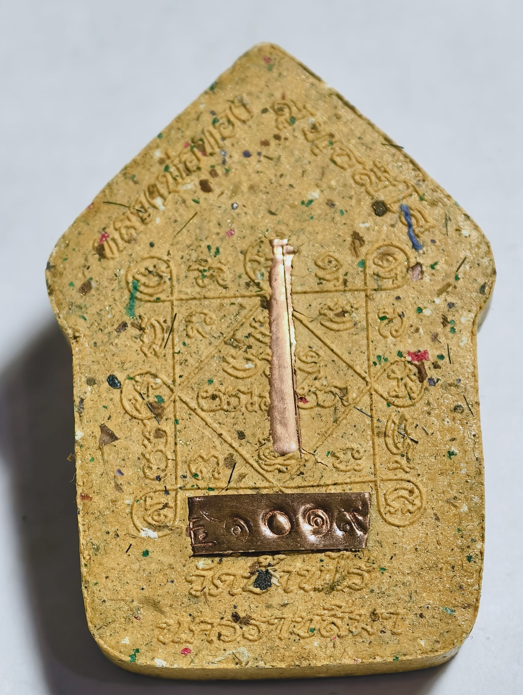 เนื้อผงมหามงคล ฝังตะกรุดโทนเงิน พร้อมกล่องเดิมจากวัด