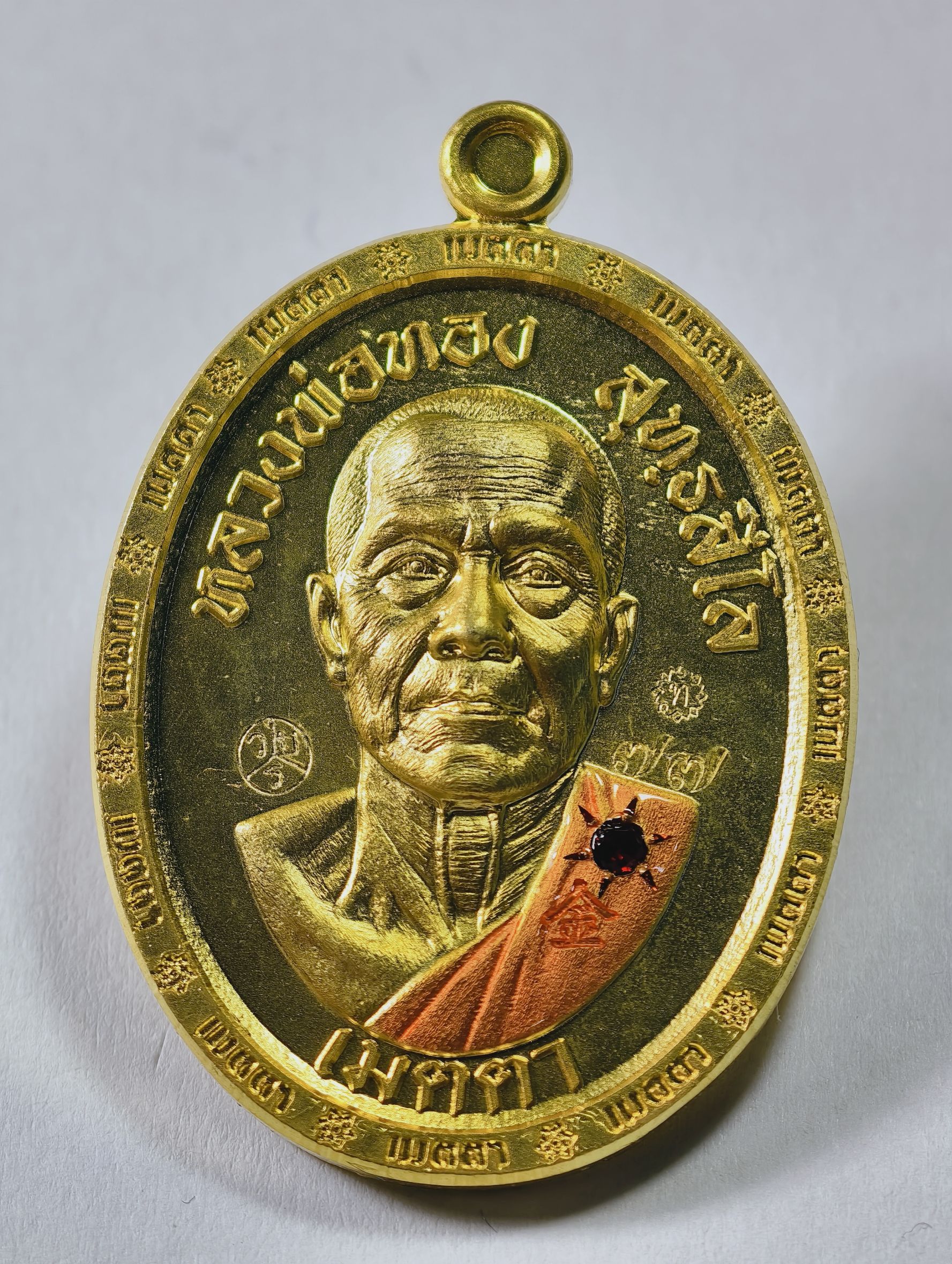 หลวงพ่อทอง วัดบ้านไร่ เหรียญเมตตา ชุบทอง ฝังพลอย AC7232