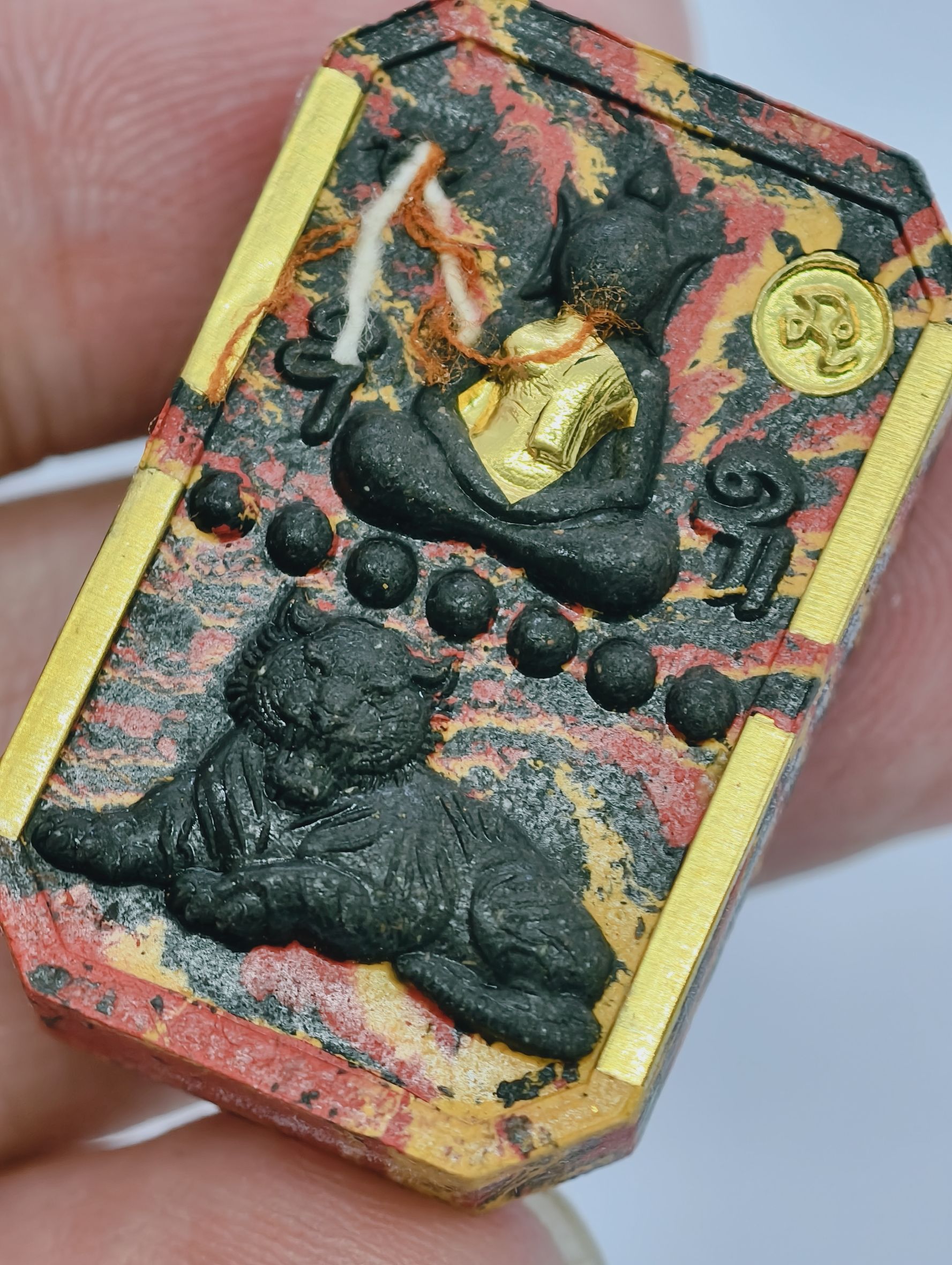 หลวงพ่อประสูติ วัดในเตา สมเด็จเสือนอนกิน พยัคฆ์เศรษฐี ชุดงานมาสเตอร์พีซ หน้ากากทองคำ หมุดนะ ตะกรุดทอง4ดอก KA2892