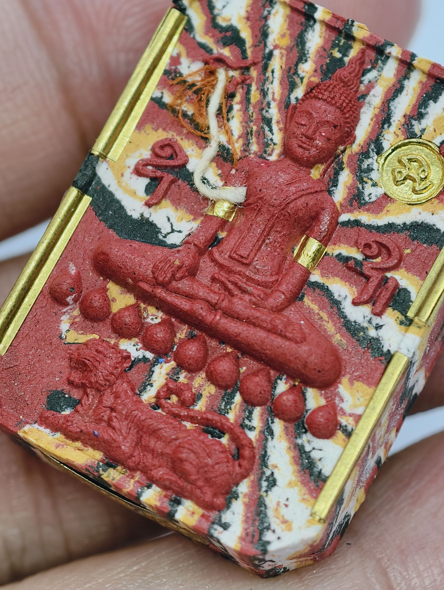 หลวงพ่อประสูติ วัดในเตา สมเด็จเสือนอนกิน พยัคฆ์เศรษฐี ชุดงานมาสเตอร์พีซ ตะกรุดทอง 4 ดอก KA2392