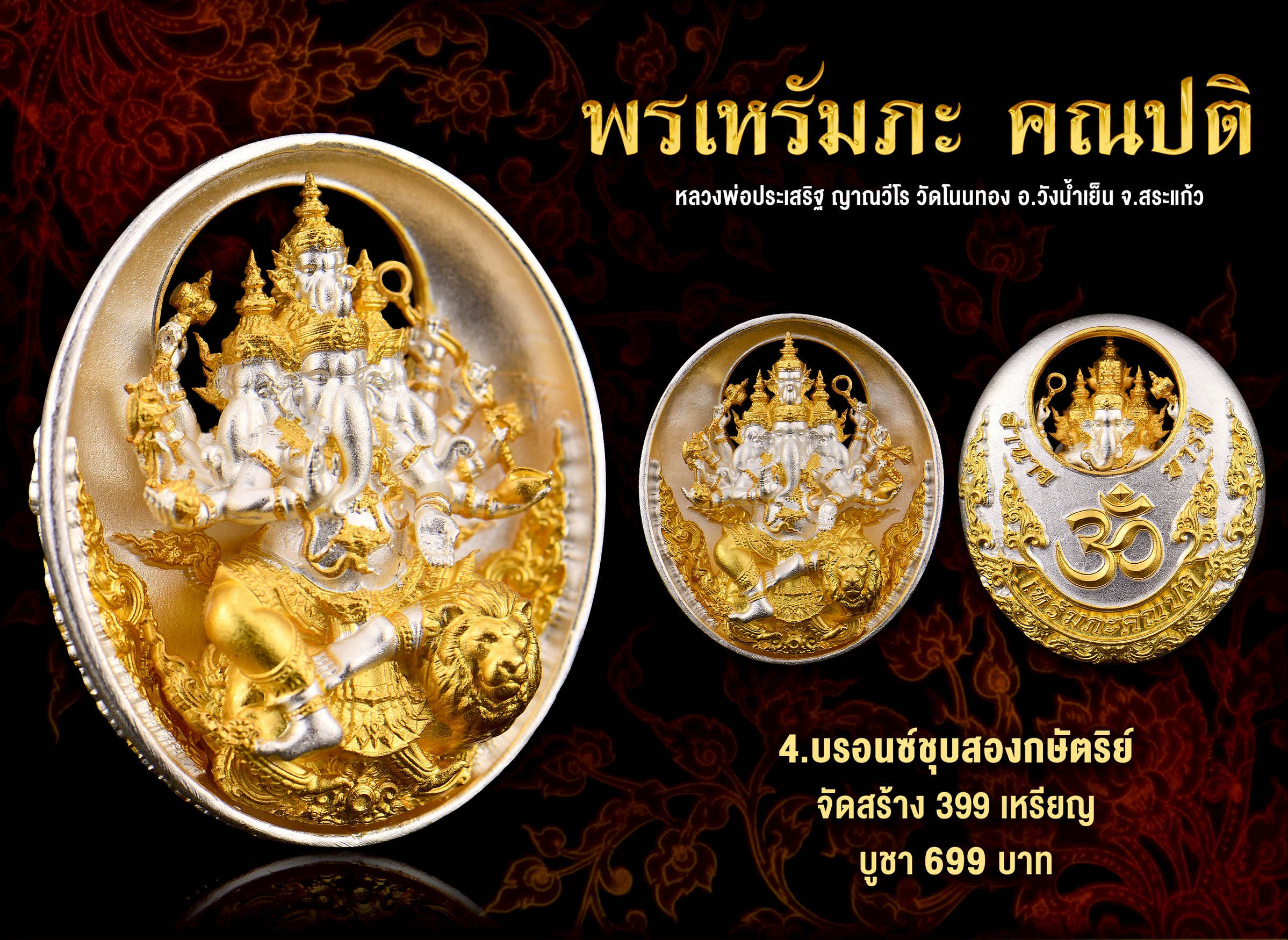 อันมีปัญญา เมตตา และชัยมงคล รวมบารมีไว้เป็นหนึ่งเดียว เพื่อคุ้มครองผู้ศรัทธาให้พ้นอุปสรรคทั้งปวง “คณปติปัญญาเวท” ประสิทธิ์เดชานุภาพแห่งองค์มหาเทพ